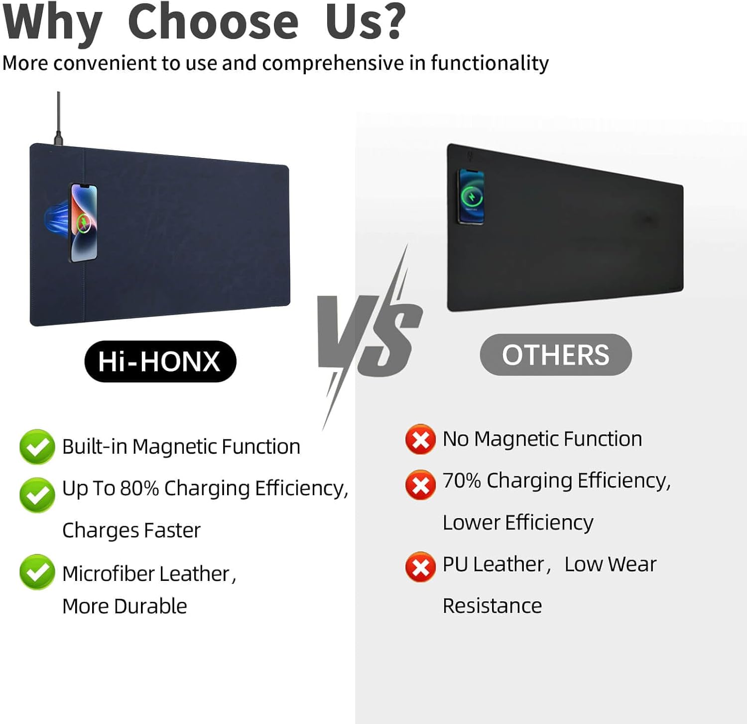- Super Smooth Surface: Our wireless charging desk pad is crafted with premium microfiber leather fabric, offering a surface with an unparalleled smooth touch, enhancing the precision of your mouse control and elevating your user experience