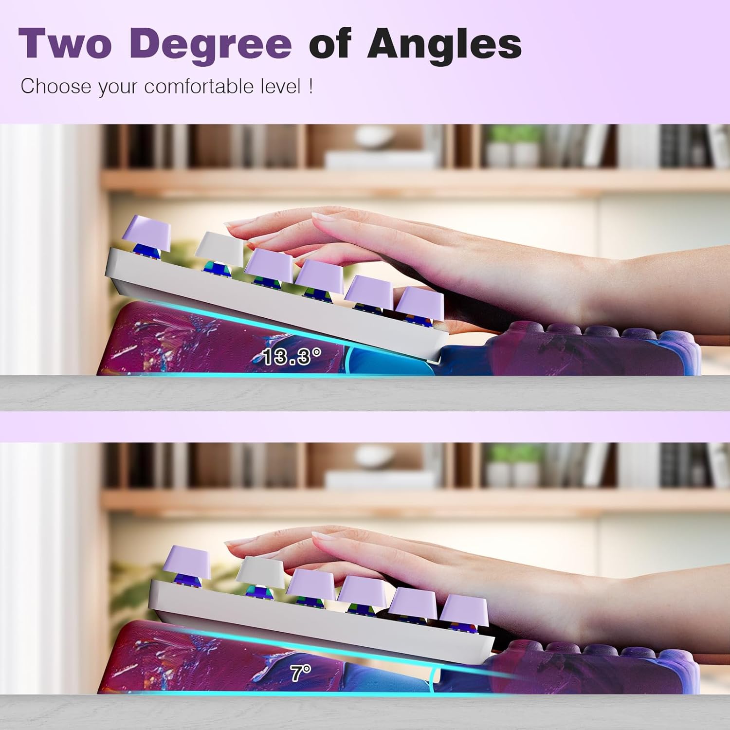 - Works with most keyboards and features two angle settings - adjust the tilt to match how you type for all-day comfort.