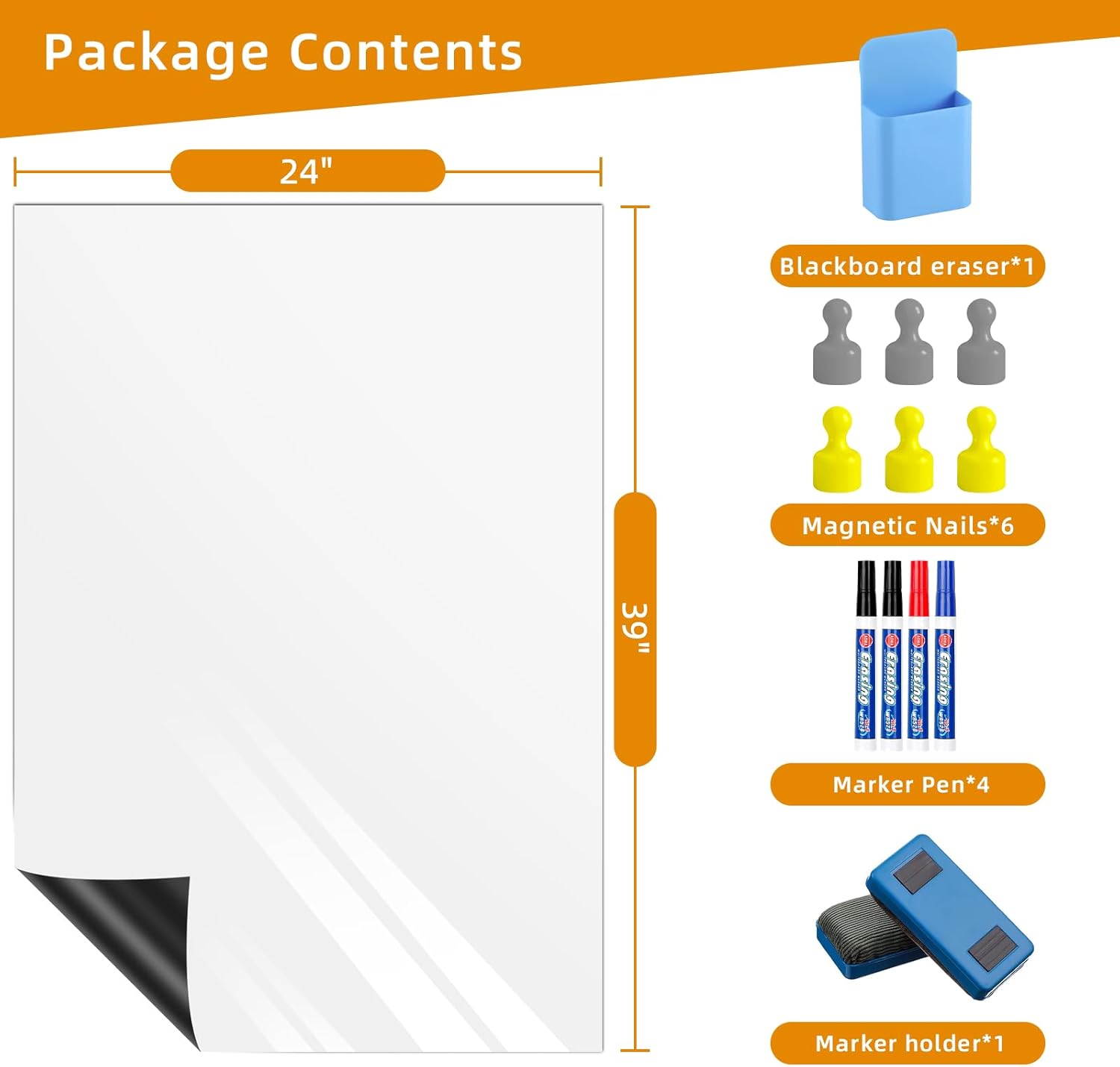 Magnetic Whiteboard Contact Paper, 24" x 39" Stick on Magnetic Dry Erase White Board Sticker on Wall, Easy to Write for Drawing, School, Office, Kitchen Fridge
