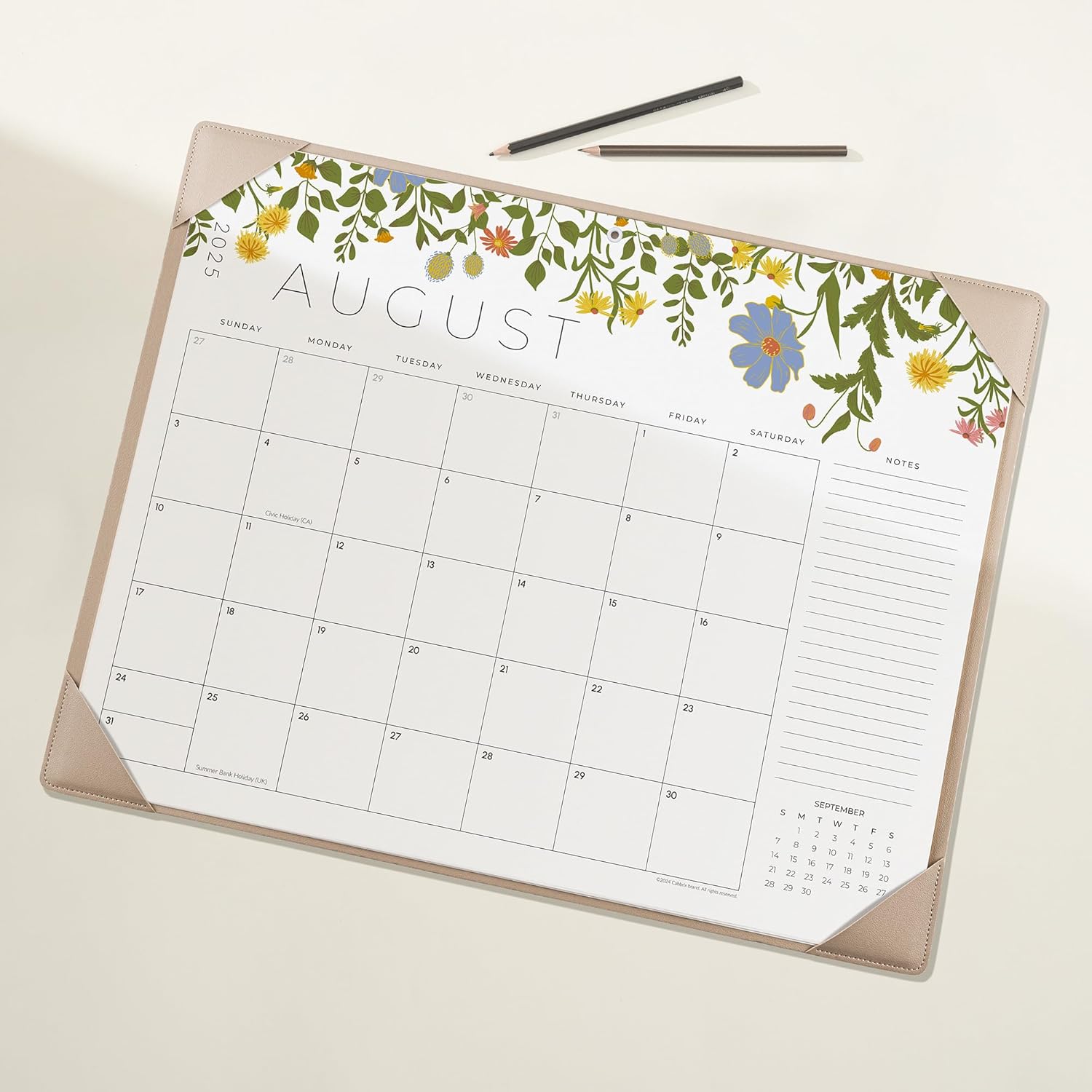 Desk Calendar 2025-2026 with Desktop Mat, Cabbrix Large Desk Pad Calendar 22 x 17 Inch Cover 12 Months Runs From July 2025 to June 2026, Floral Design Calendar 2025 for Home School and Office (Apricot)