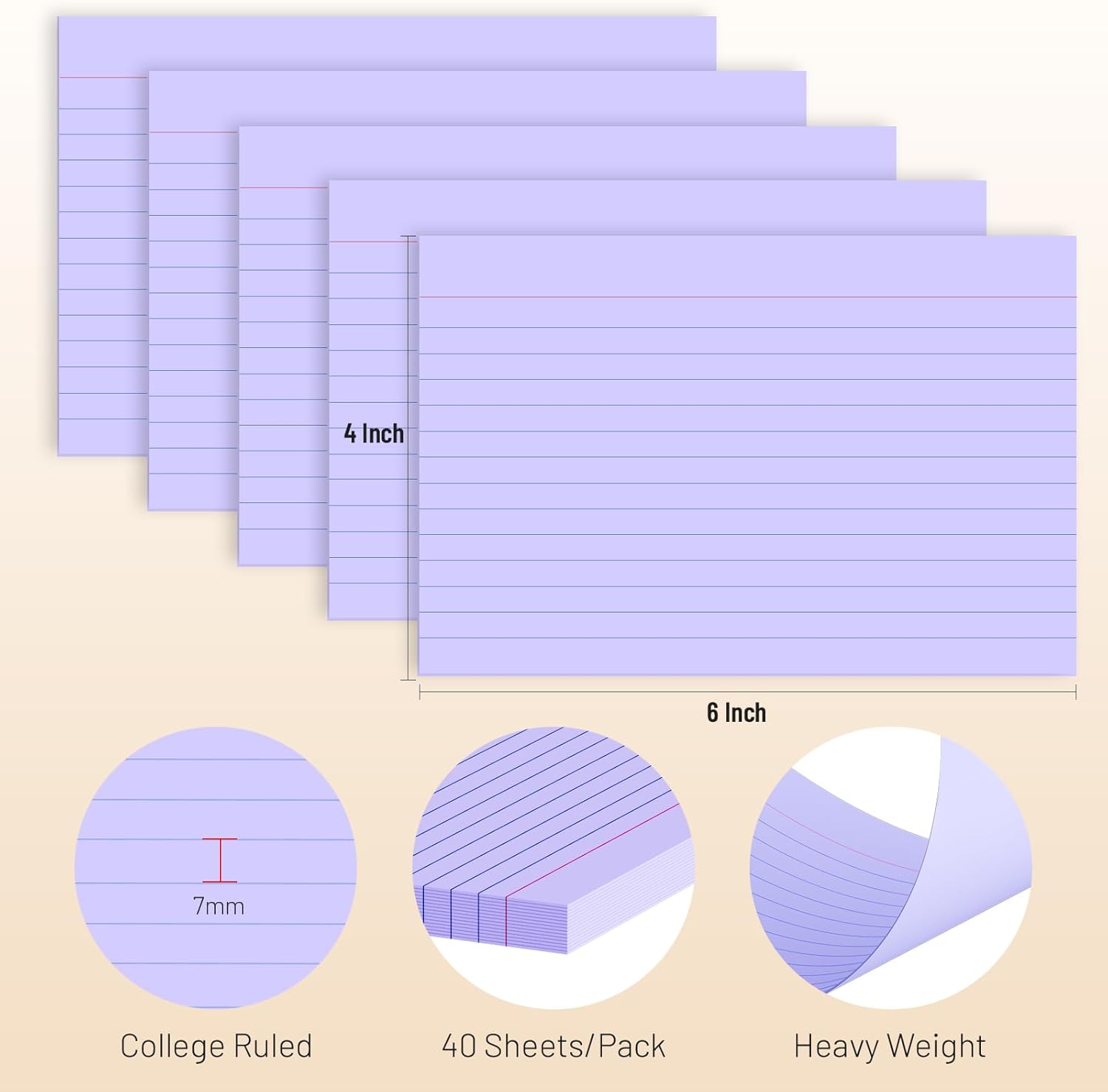 - [Bulk Value Pack & Organization Efficiency] Get 5 packs of 40 sheets each (200 total) purple ruled index cards. Thick paper resists bleeding and curling, ideal for highlighters, pens, and markers