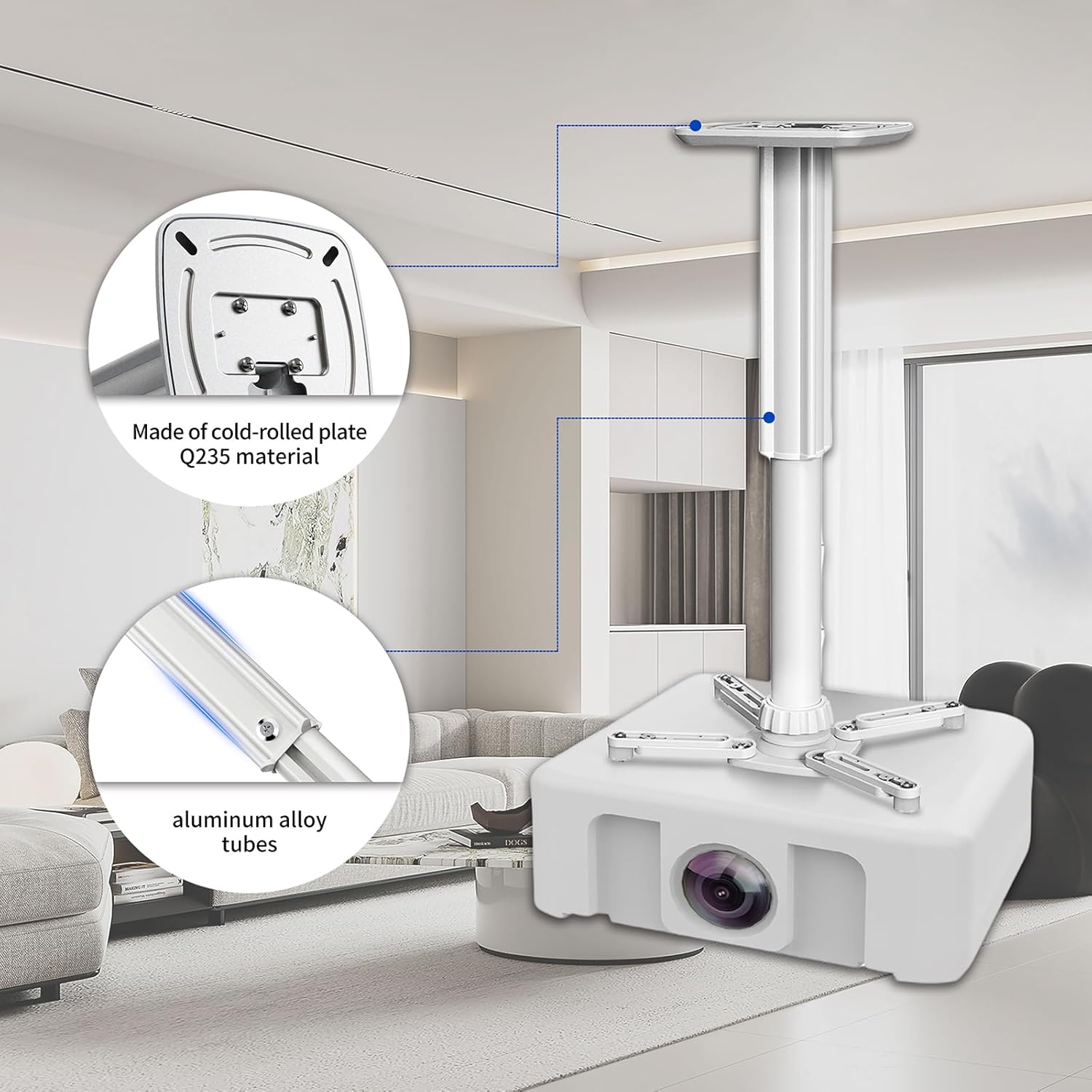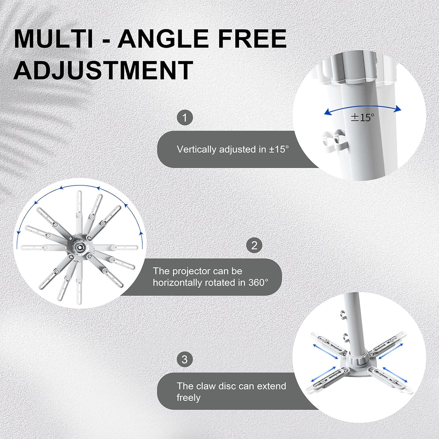 - Durable Projector Mount Ceiling Installation, The Projector Holder Is Fully Adjustable With Rotated In 360° And Vertically Adjusted In ±15°, Hitting All The Right Viewing Angles. The Projector Ceiling Mount Adjustable Height Extending Arms Could Reach From 6 Inches To 9 Inches