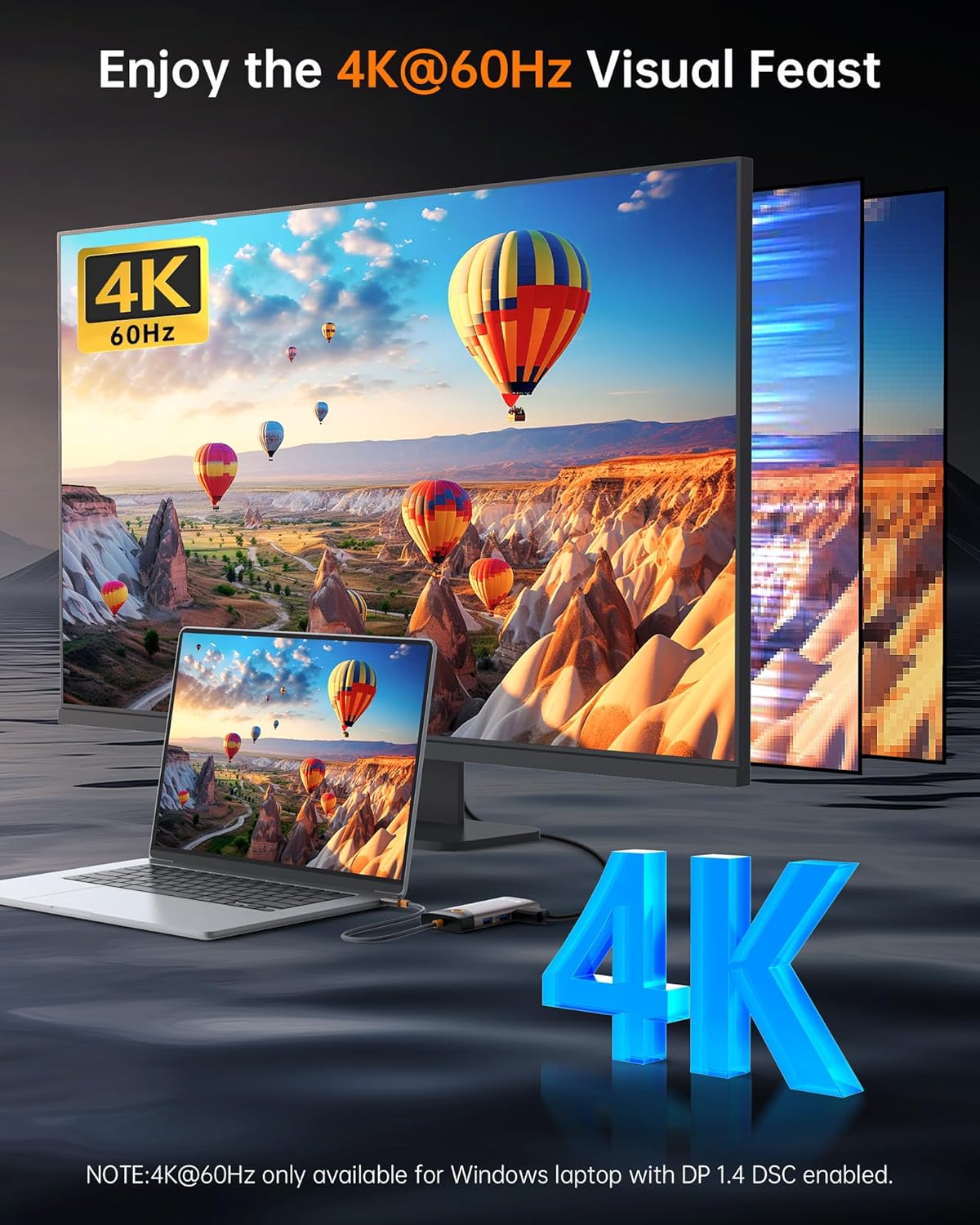 - 【𝐒𝐭𝐮𝐧𝐧𝐢𝐧𝐠 𝟒𝐊@𝟔𝟎𝐇𝐳 𝐕𝐢𝐬𝐮𝐚𝐥𝐬】Mirror or extend your screen to stunning 4K UHD quality via the HDMI port on the NOVOO USB C hub. Enjoy lifelike visuals for presentations, design work, entertainment, and more, with smooth, reliable performance for an immersive experience.