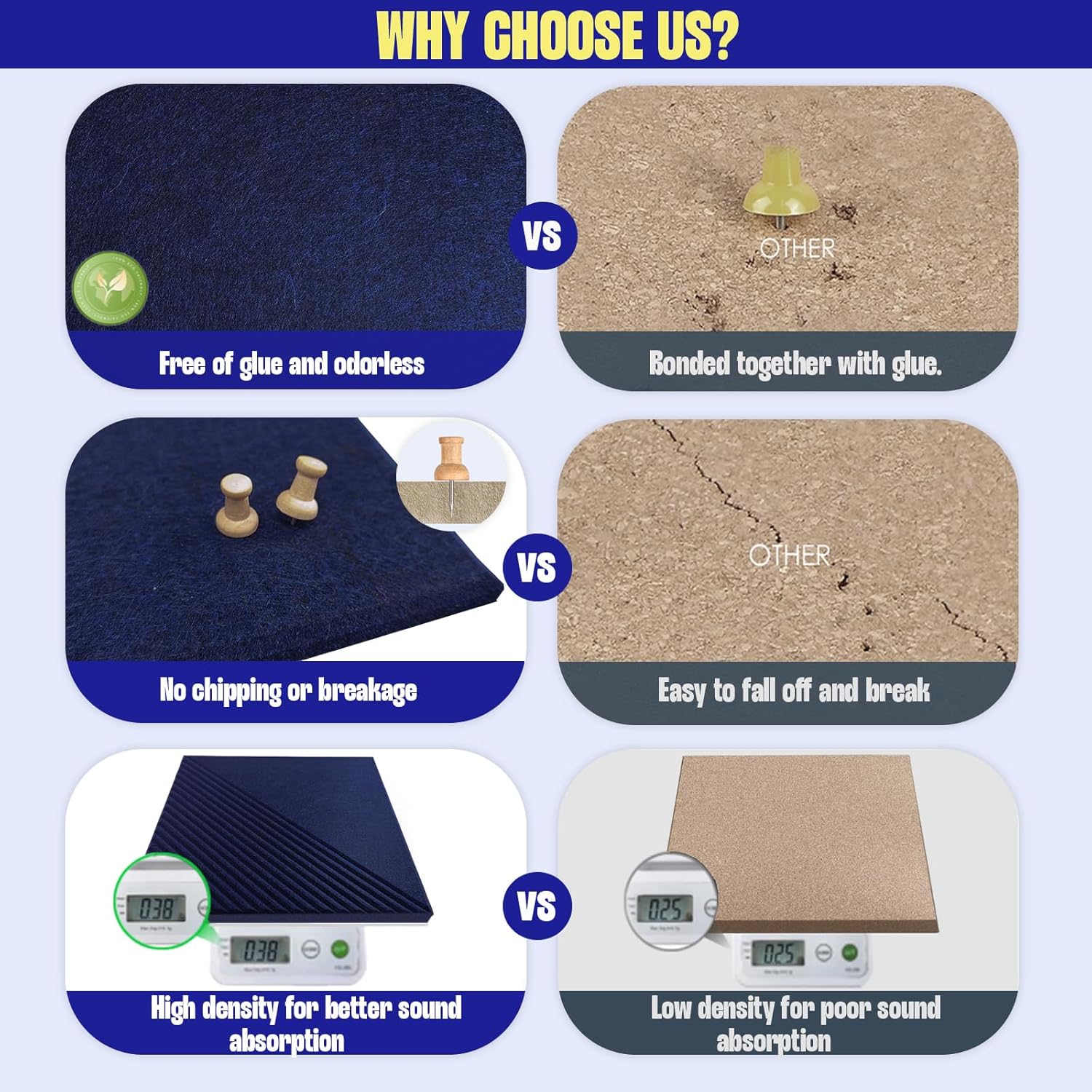Large Cork Board for Walls 48"x 36", 12 Pack Felt Wall Tiles with Safe Removable Adhesive Tabs, Cork Board for Office,Pinboard Bulletin Board - Dark Blue