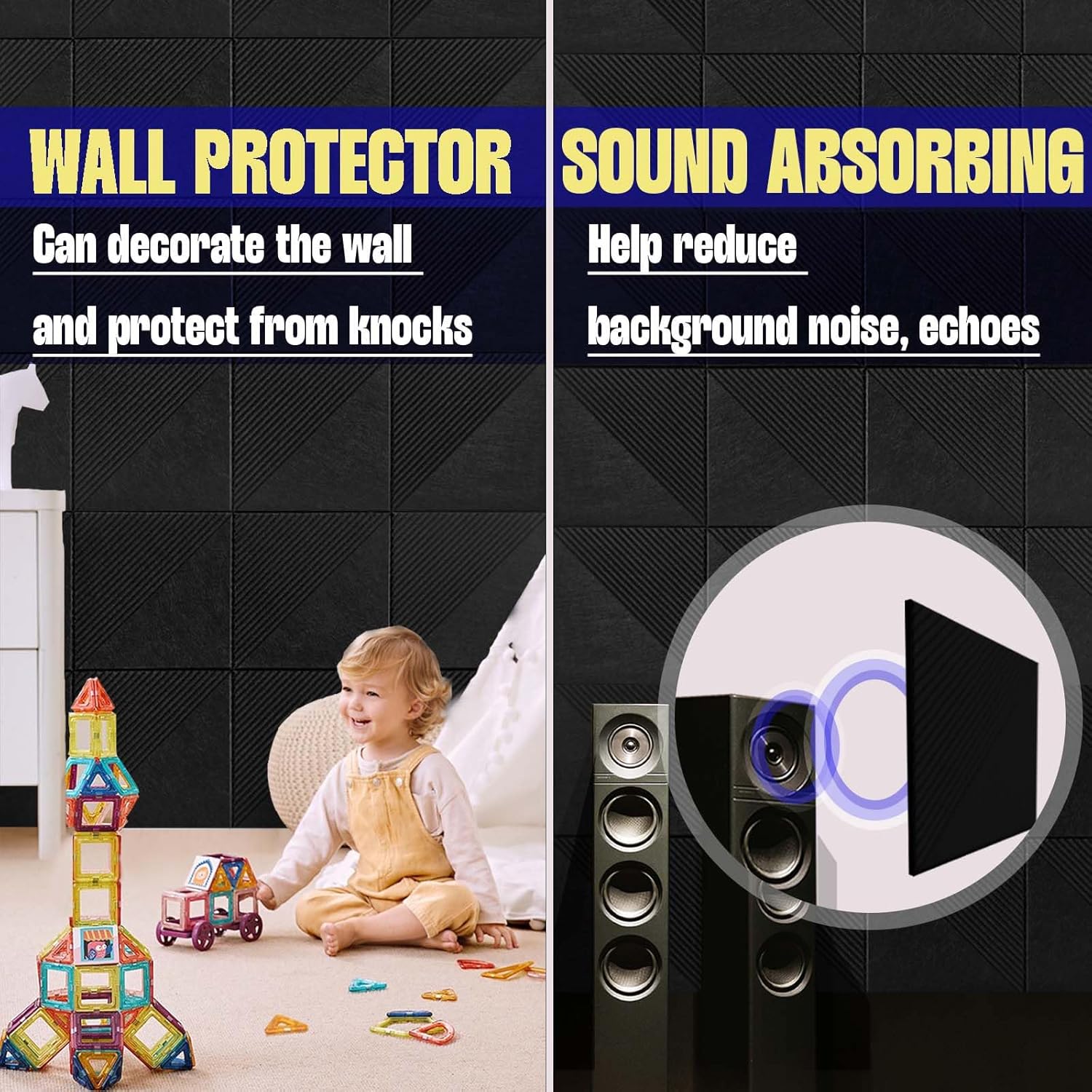Large Cork Board for Walls 48"x 36", 12 Pack Felt Wall Tiles with Safe Removable Adhesive Tabs, Cork Board for Office,Pinboard Bulletin Board - Black