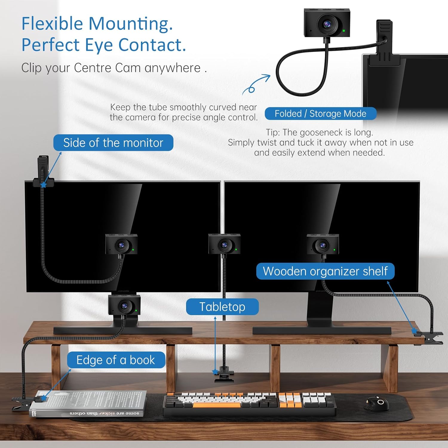 - 【Eye-Level Computer Camera for Natural Eye Contact】 This center-mounted computer camera for desktop helps simulate real eye contact, making virtual conversations feel personal and natural. Easily attached to the center of your screen, this camera for computer enhances trust and engagement during online interviews, client calls, or FaceTime chats. When not in use, simply slide it aside without disrupting your screen layout—great for minimal desk setups.