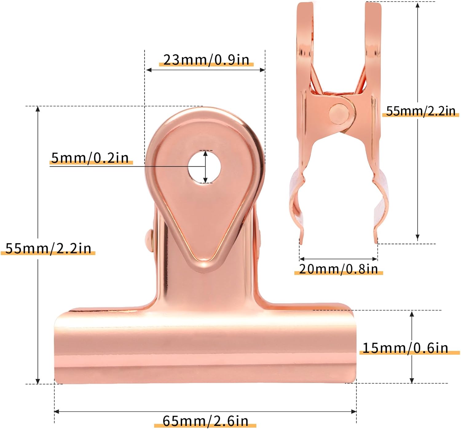 SIAMESE Bulldog Clips, 4 Pcs Binder Clips for Office & Kitchen, Multi-Purpose Binder and Food Bag Clamps for Sealing, Storage, Hanging (Rose Gold)