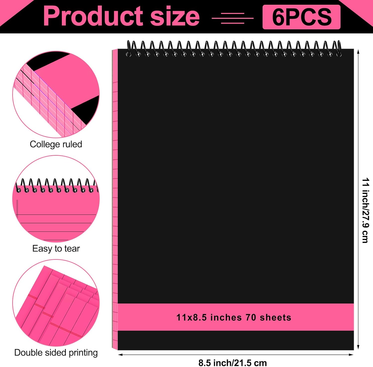 - Large Size: measuring approximately 8.5 x 11 inches/ 21.5 x 27.9 cm, our spiral notebook offer ample writing space for most of your needs; Whether you're jotting down to do lists, taking lecture notes, or brainstorming ideas, our pads provide plenty of room for your thoughts to flow freely