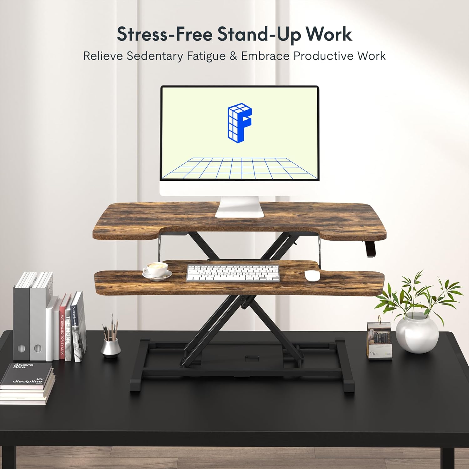 - Effortless Setup, Ready in Minutes: Say goodbye to complicated installations. Our desk converter is designed for quick and easy assembly. Attach the keyboard tray, follow the clear step-by-step instructions, and you’re all set to begin your work without delay. Maximize your time and focus on productivity with our intuitive setup process.