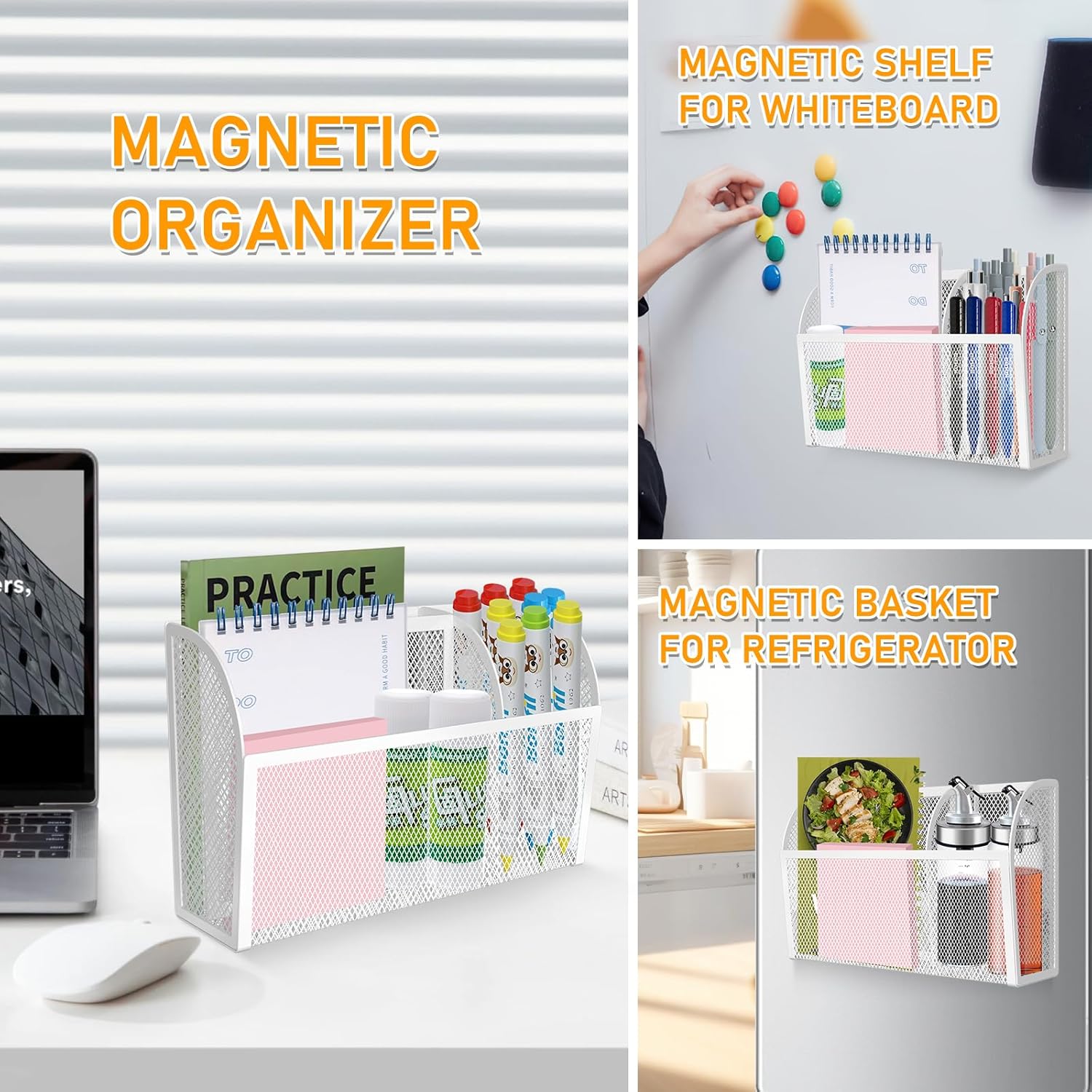 - Durable & Space-Saving: This magnetic marker storage basket offers ample storage for school, office, and kitchen supplies. Perfect for organizing pens, markers, clips, and more on refrigerators, lockers, whiteboards, and desks without taking up extra space.