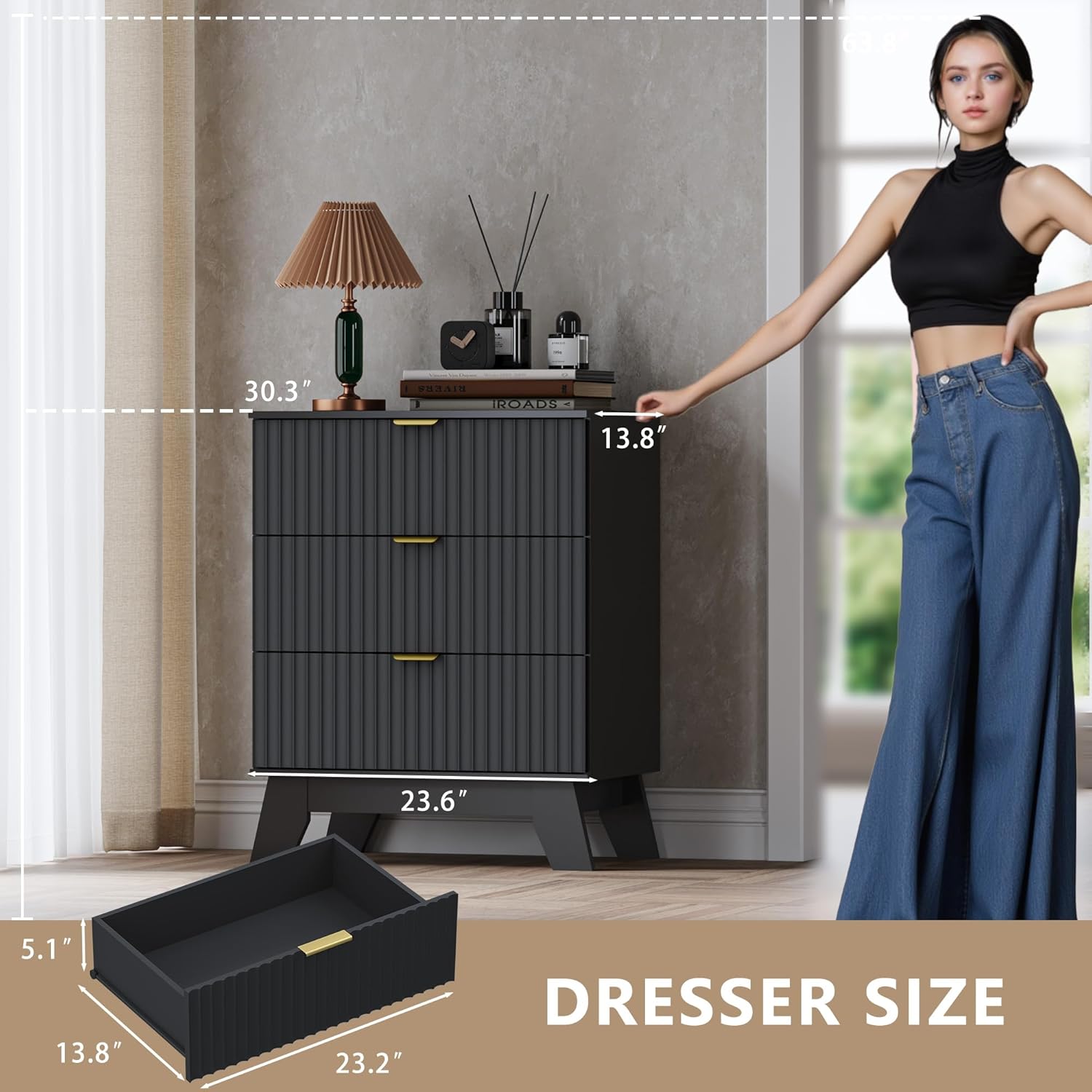 - Modern Fluted Design with Compact Elegance: Enhance your space with the sleek, wave-like fluted panel design and smooth, curved edges that merge modern aesthetics with safety. BORNOON 3-drawer dresser is a stylish yet functional addition to any bedroom, entryway, or small living space. Its compact size makes it perfect for apartments and dorms while offering a boho-inspired touch.