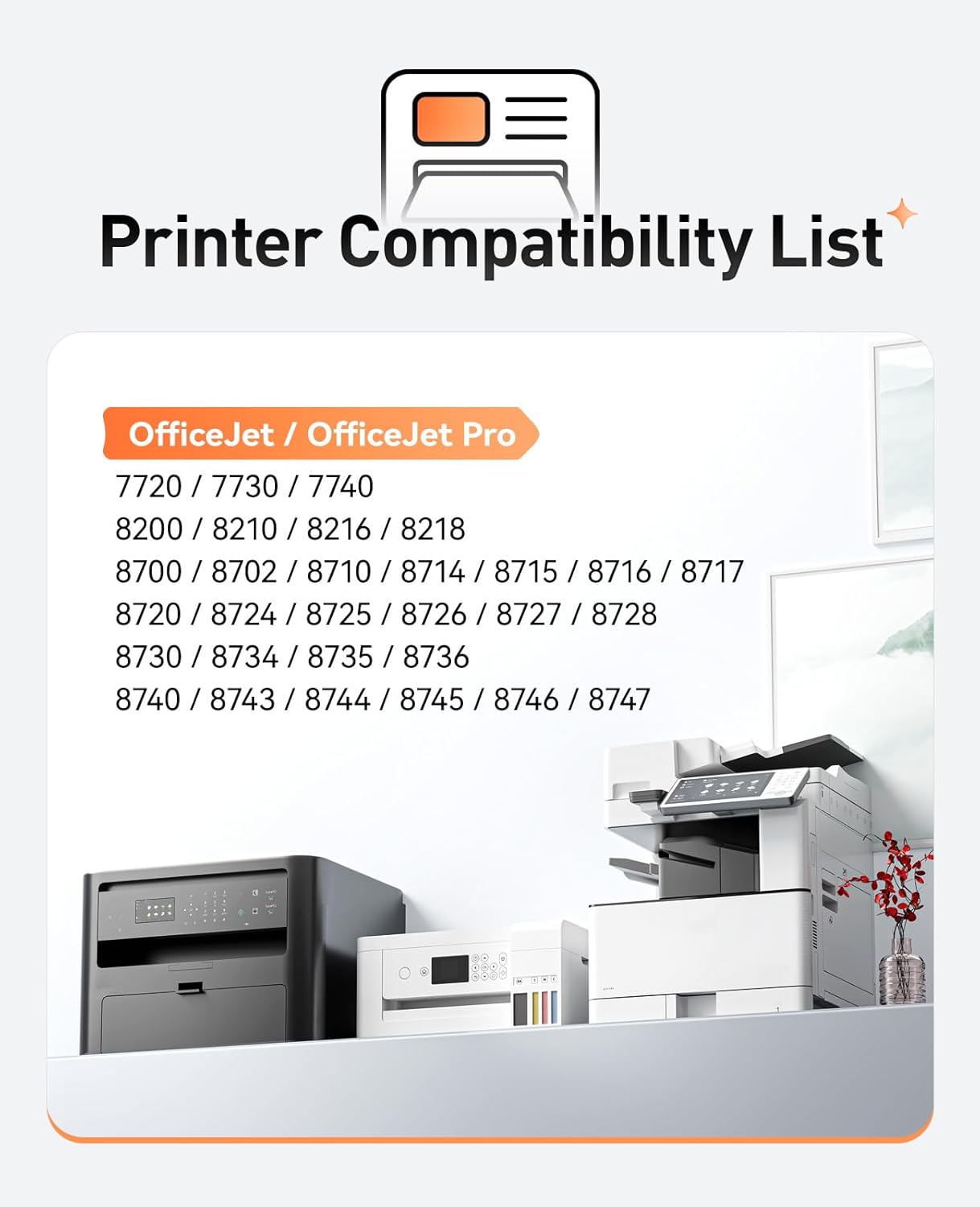 - Compatible Printer: Compatible with HP OfficeJet / OfficeJet Pro 7720 7730 7740 8200 8210 8216 8218 8700 8702 8710 8714 8715 8716 8717 8720 8724 8725 8726 8727 8728 8730 8734 8735 8736 8740 8743 8744 8745 8746 8747 Printers.