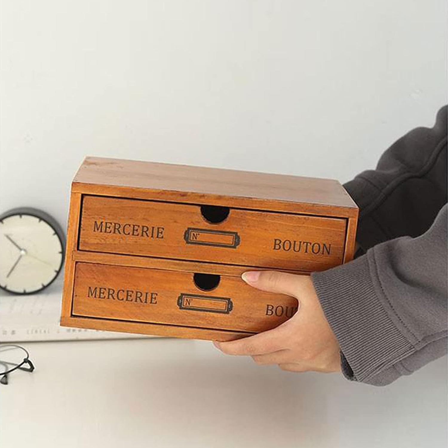 - SET OF 4 - Our package includes 4 pieces of organizers, including a total of 16 large-capacity drawers, which are enough to easily store jewelry, cosmetics, documents, and other small items, making your desktop cleaner. You can use these wooden storage boxes as a set or separately for different areas in your home.