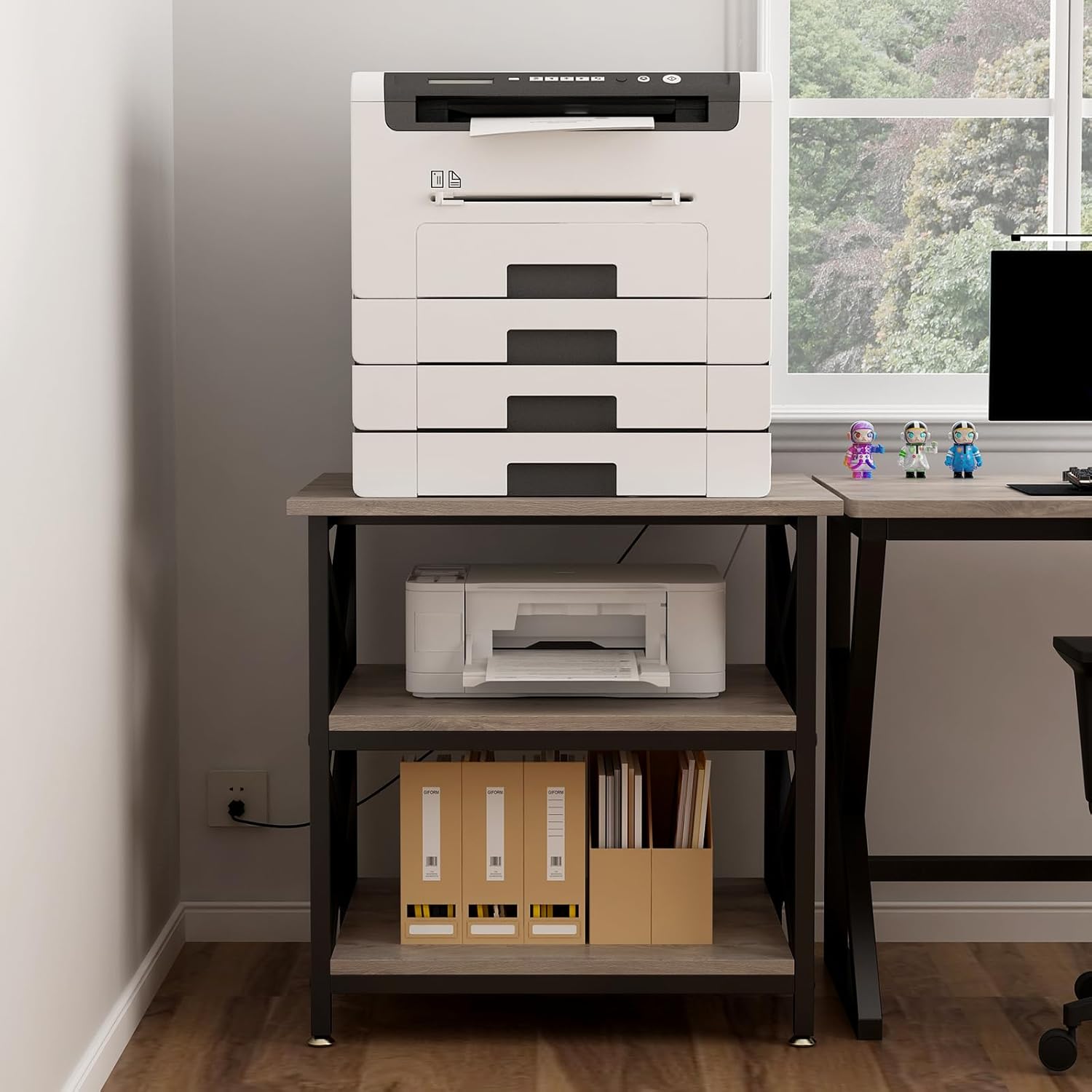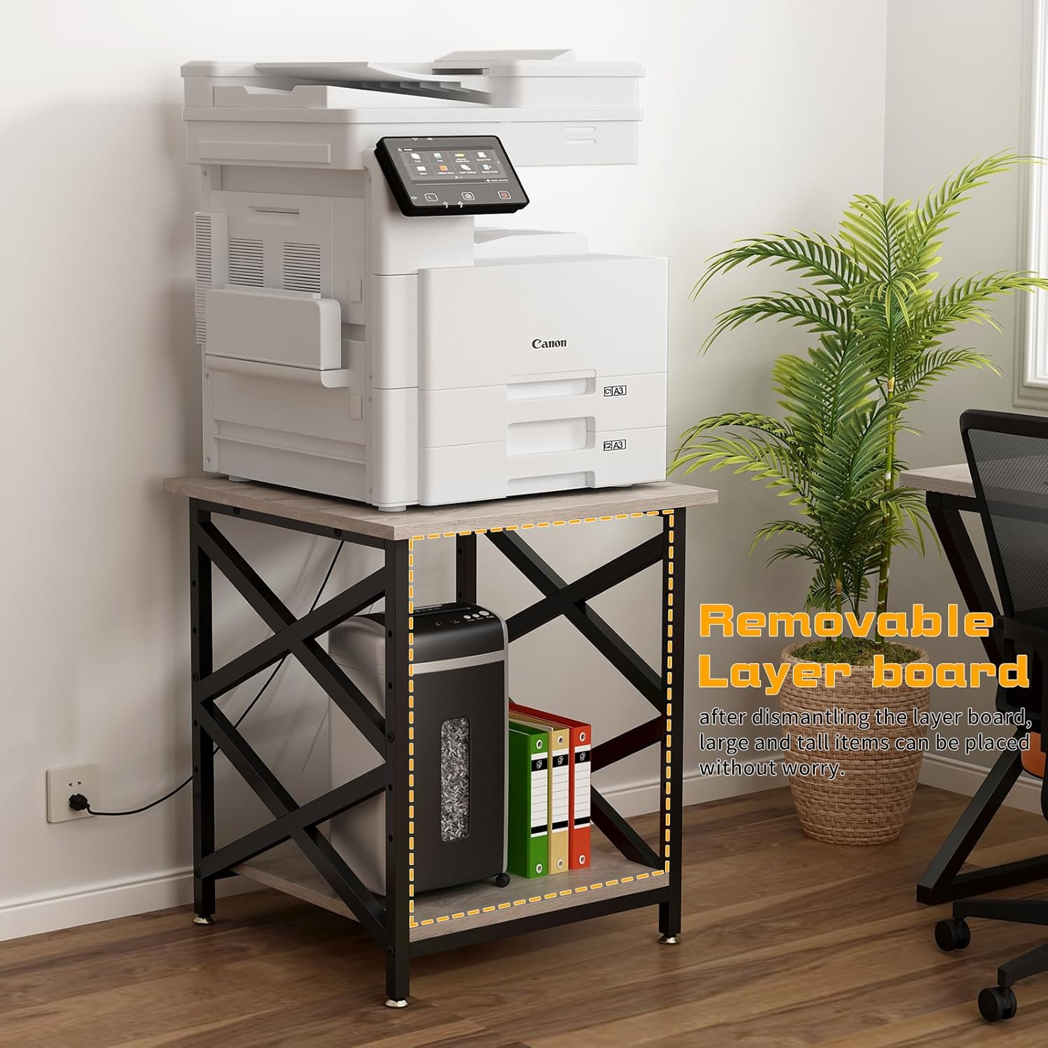 - 【Sturdy and Heavy&Built-in Power Outlets】each shelf is reinforced with a sturdy steel tube underneath for enhanced stability and impressive weight capacity. Built with premium particle board Printer table with charging station contains 2 power outlets and 2 USB charging ports