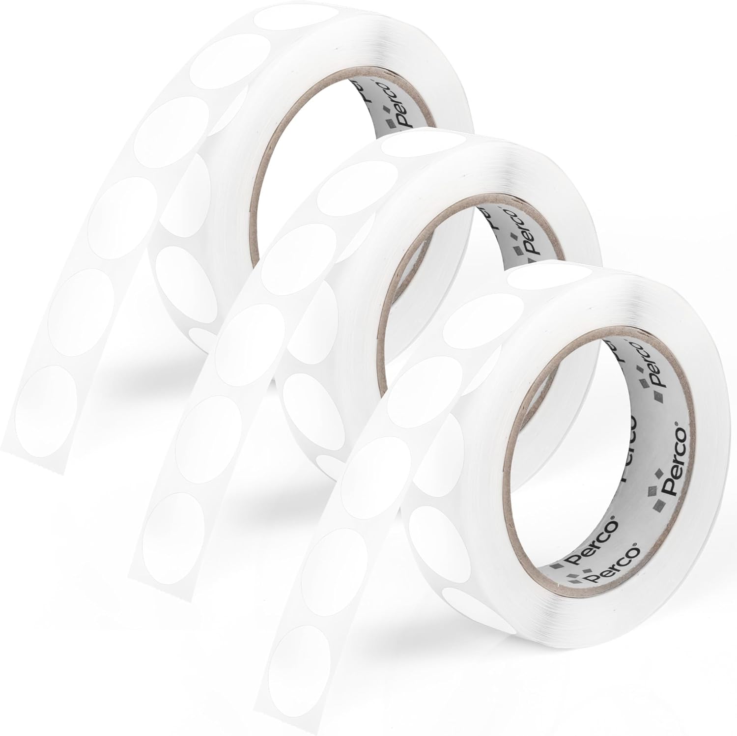 Perco White 1-Inch Round Circle Dot Sticker Labels - Multi-Roll Pack (3 Rolls, 1,000 Labels Each) - Permanent Adhesive, Vibrant Colors, Strong Hold - Perforated for Easy Use - Made in USA