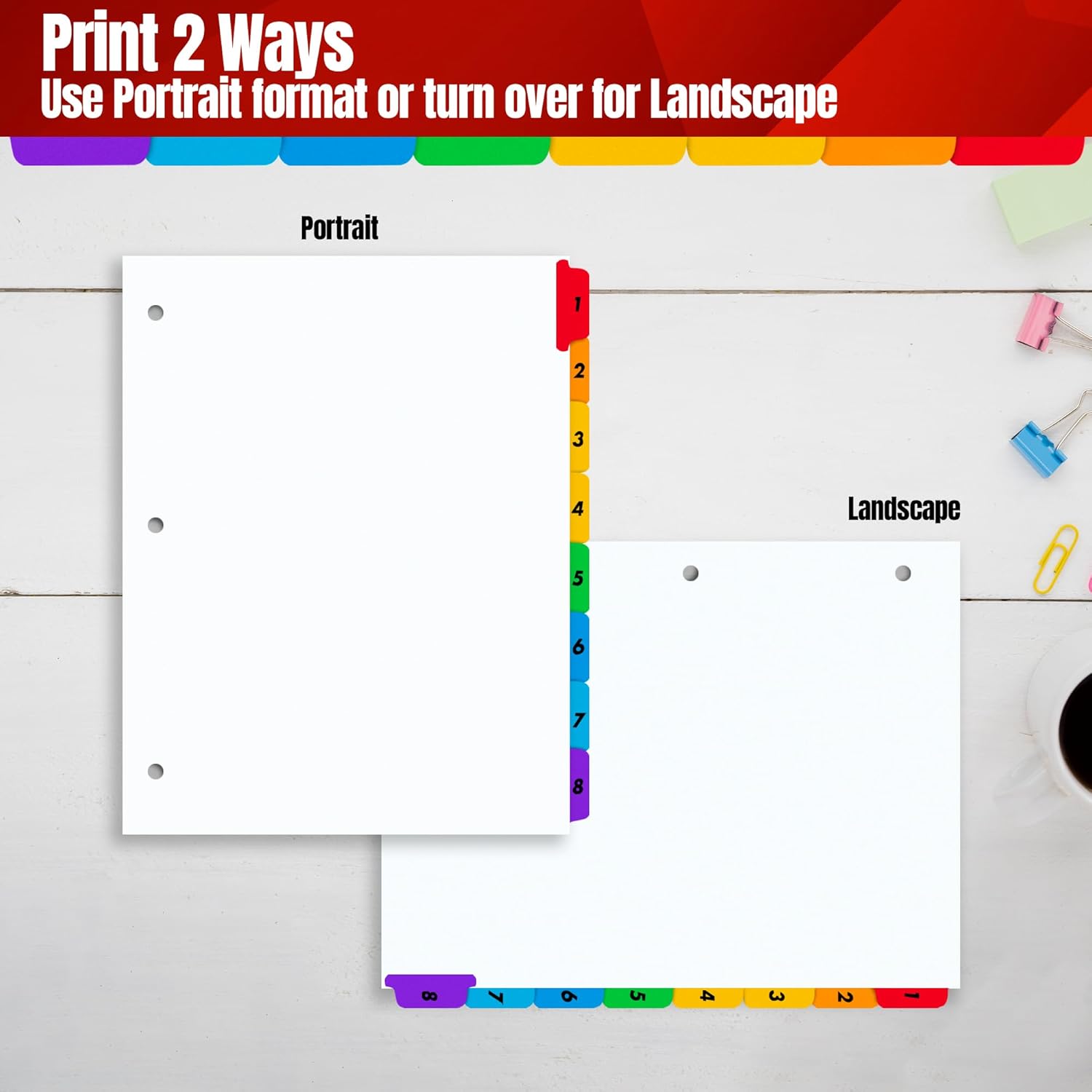 Tab Dividers for 3 Ring Binders – 6 Sets, 1–8 Numbered Index Dividers with Table of Contents – 8.5 x 11 in, 3-Hole Punched – Binder Dividers for School, Office, Filing, Organizing - 6 Pack
