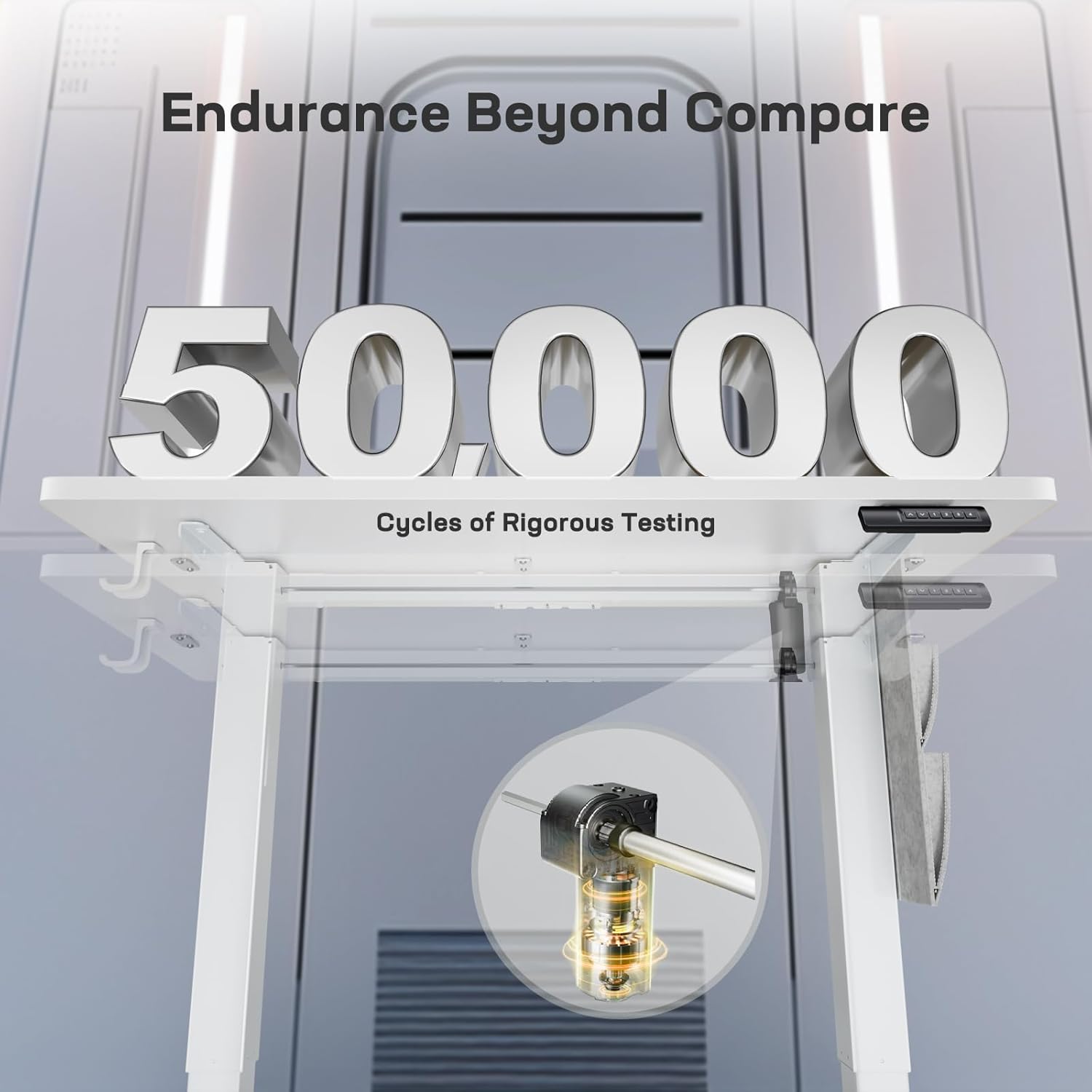 - Energy-efficient Motor: This computer desk features a quiet motor operating below 50 dB, moving smoothly at 1 inch per second even at maximum load. Its solid steel frame ensures stability and a reliable foundation. The energy-efficient motor consumes less power, making it eco-friendly. Designed for daily use, it supports a dynamic work environment, transitioning seamlessly between tasks. The durable frame remains stable regardless of load or adjustments, ensuring long-lasting performance.