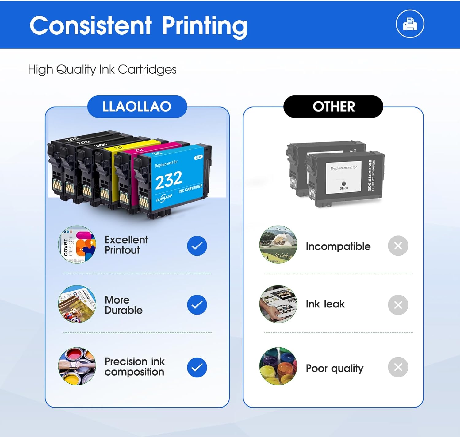 - Our T232 232 232XL ink replacement for Epson 232XL Ink Cartridges Combo Pack through strict quality inspection to bring you reliable printing effect