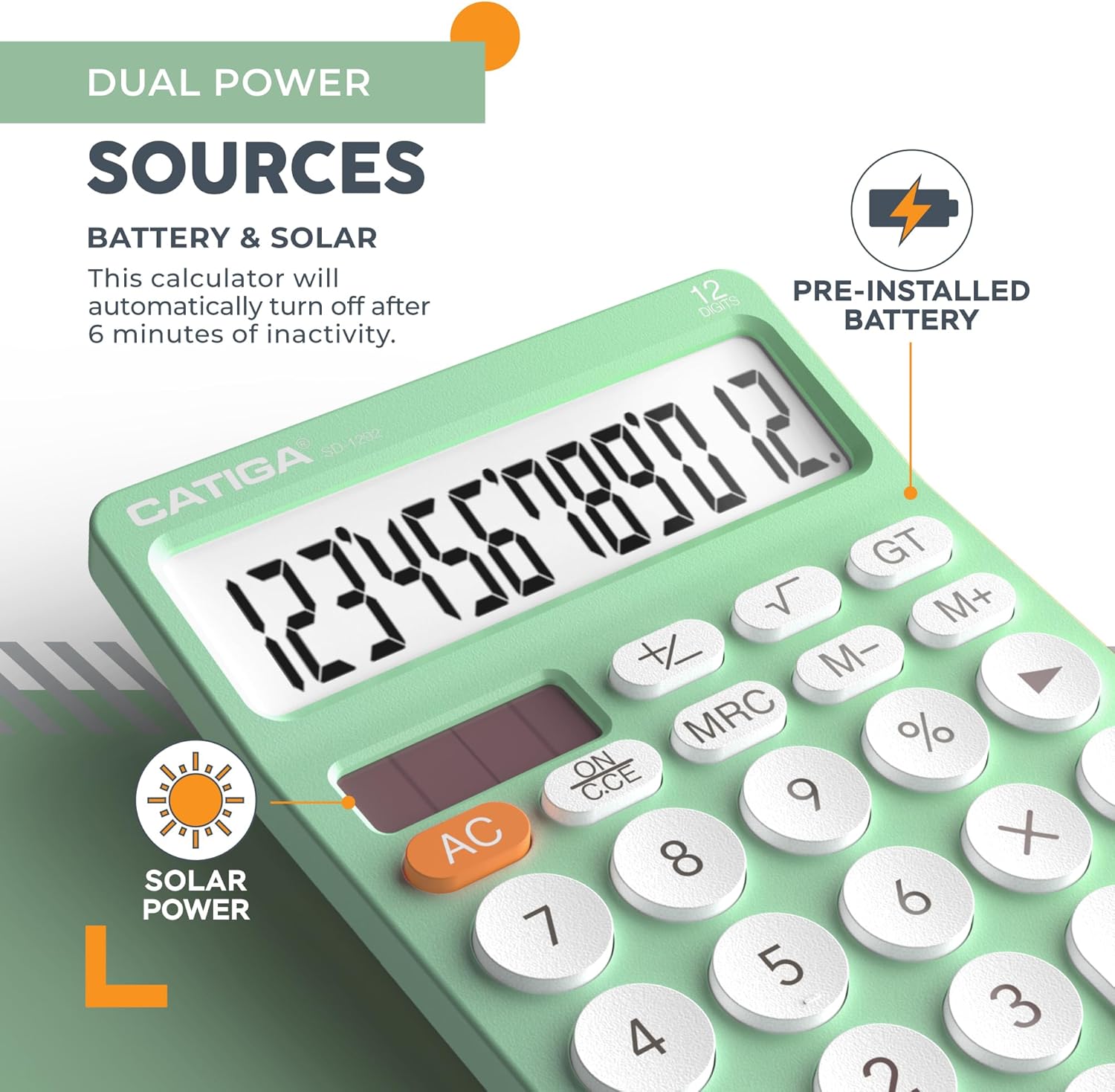 - 【Essential Cute Calculator for School and Study】The CATIGA 12-digit desk calculator is a cute calculator designed for students and daily users. Its lightweight, colorful build makes math tasks fun and easy. Perfect as a desktop calculator for school, home, or office, it delivers reliable performance with vibrant style.