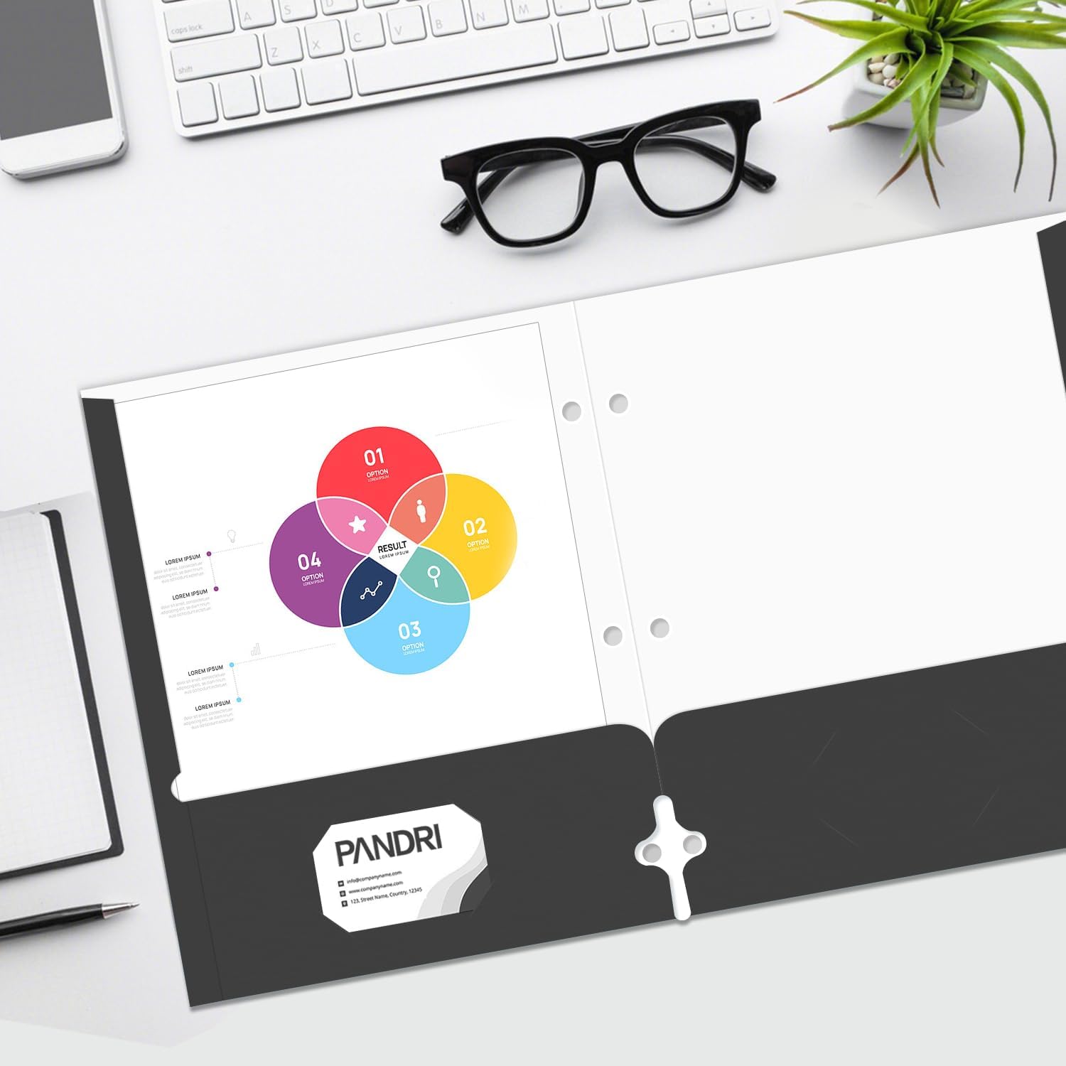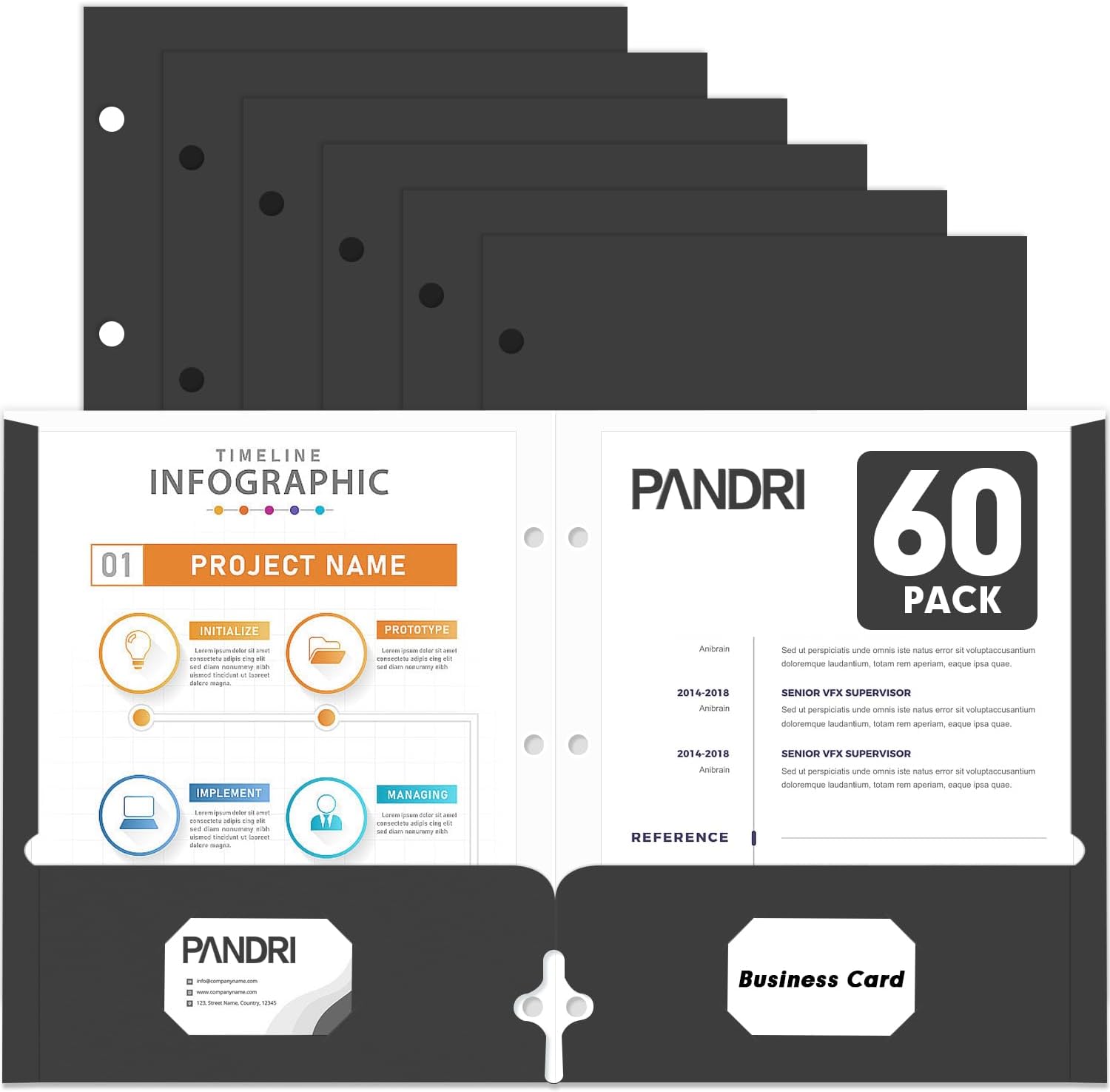 - Folder Design : Each folder has two die-cut business card slots suitable for storing business cards, and the folder with pockets also has three pre-drilled holes so you can easily punch holes for use with the 3-ring binder for convenient storage and management of your documents
