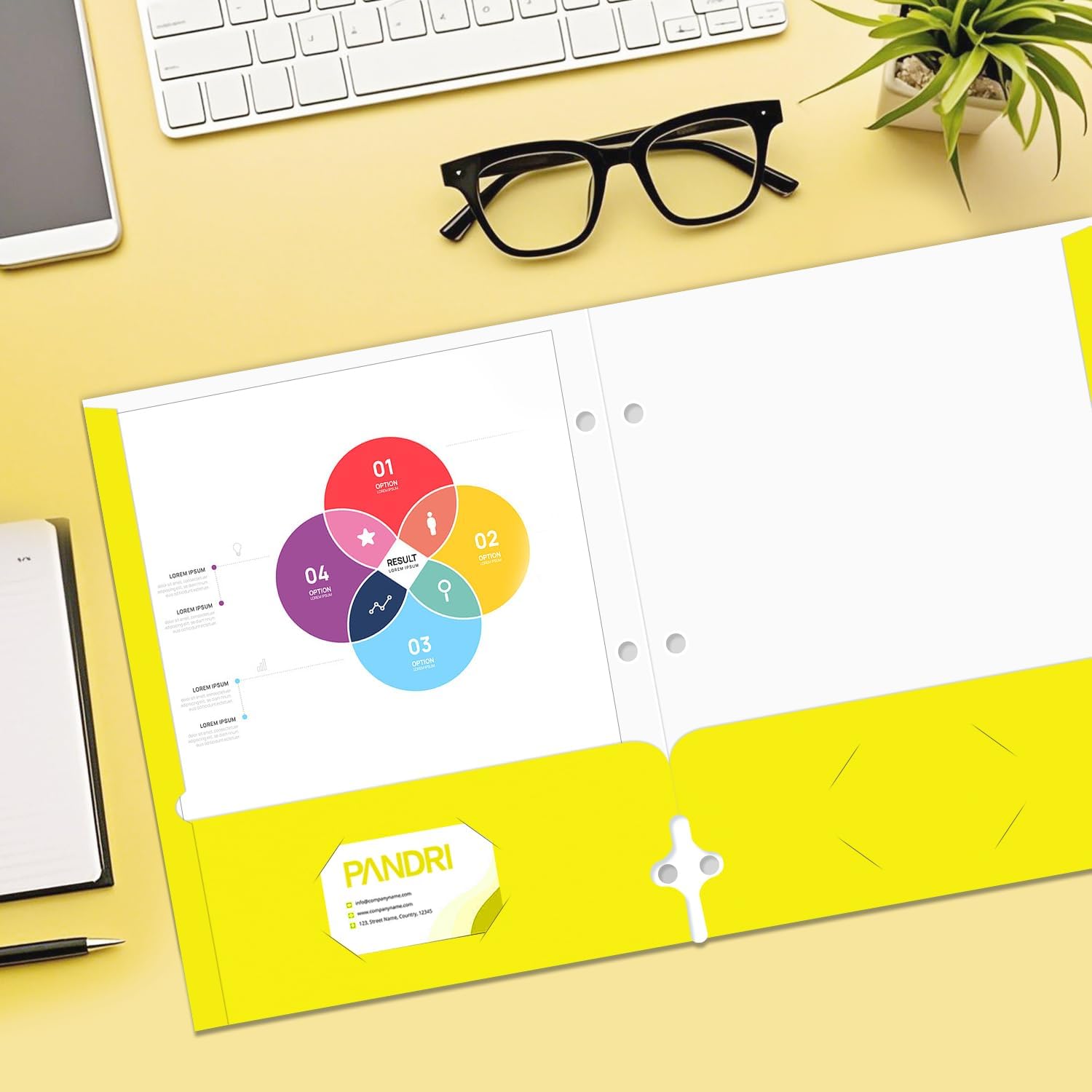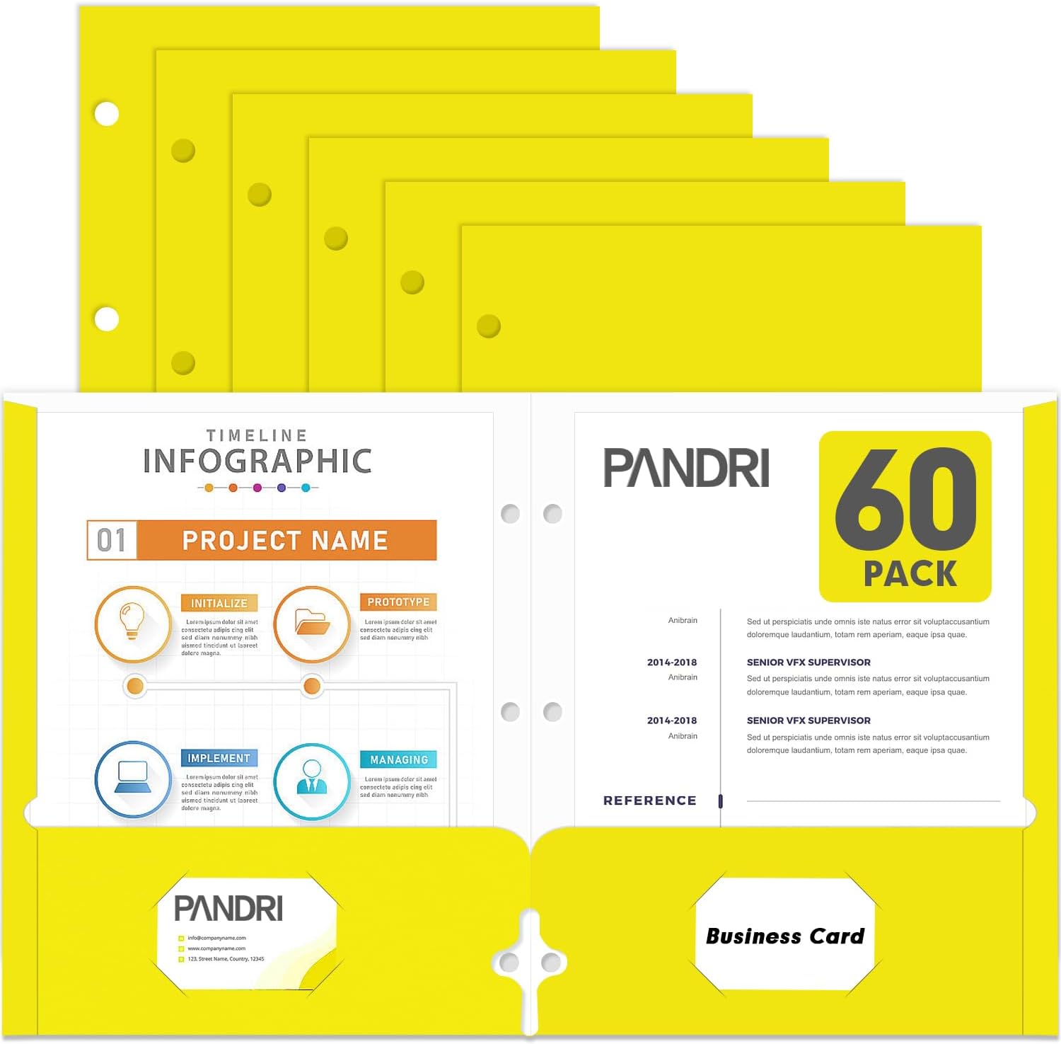 Two Pocket Portfolio Folders, PANDRI 60 Pack 3 Hole Punched 2 Pocket Folders for 3 Ring Binder, Letter Size Paper File Folder for School Office Home Business, Yellow