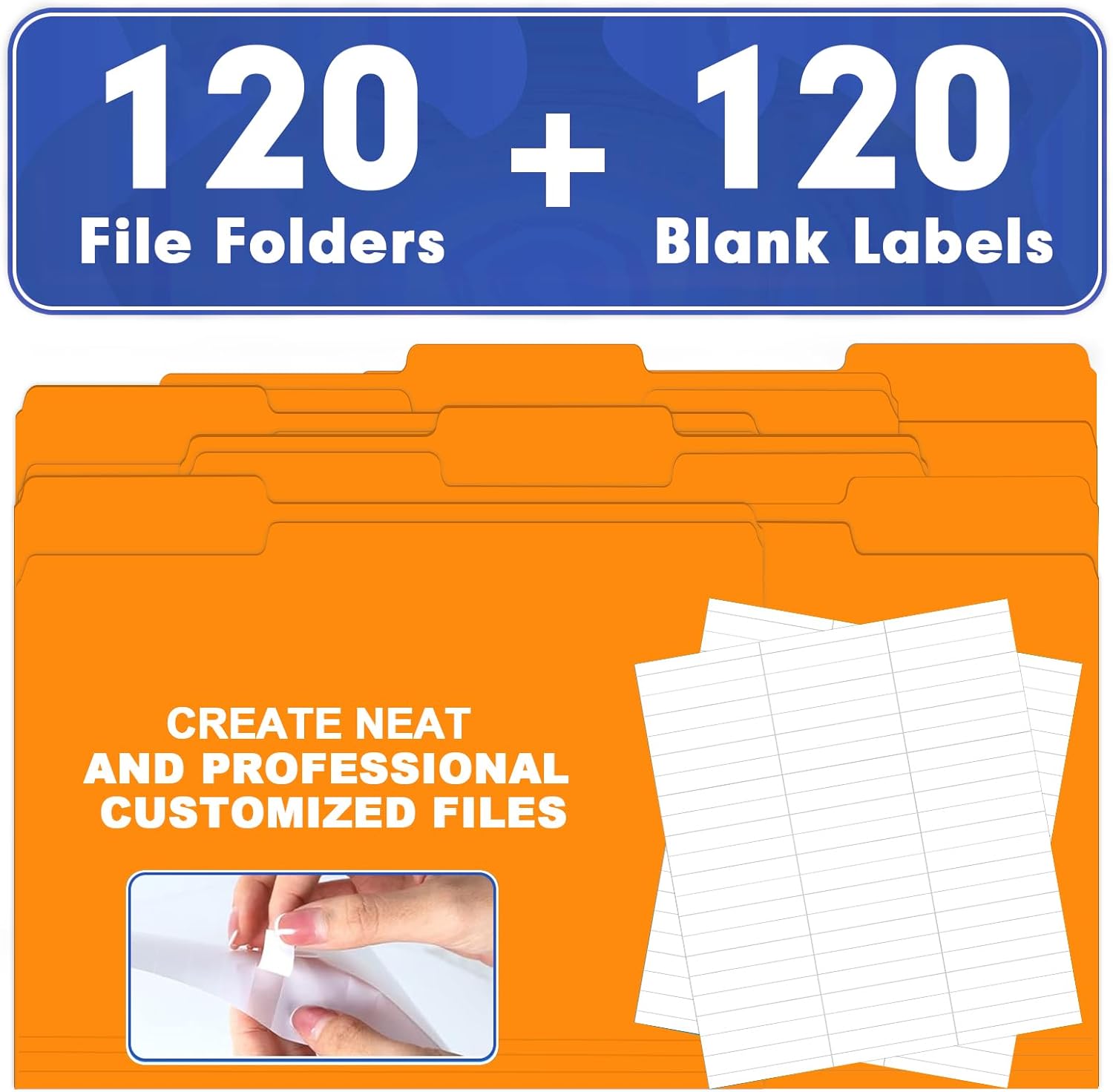 File Folder, HERKKA 120 Pack 1/3 Cut Tab File Folders, File Folders Great for Organizing and Filing, Letter Size, Orange