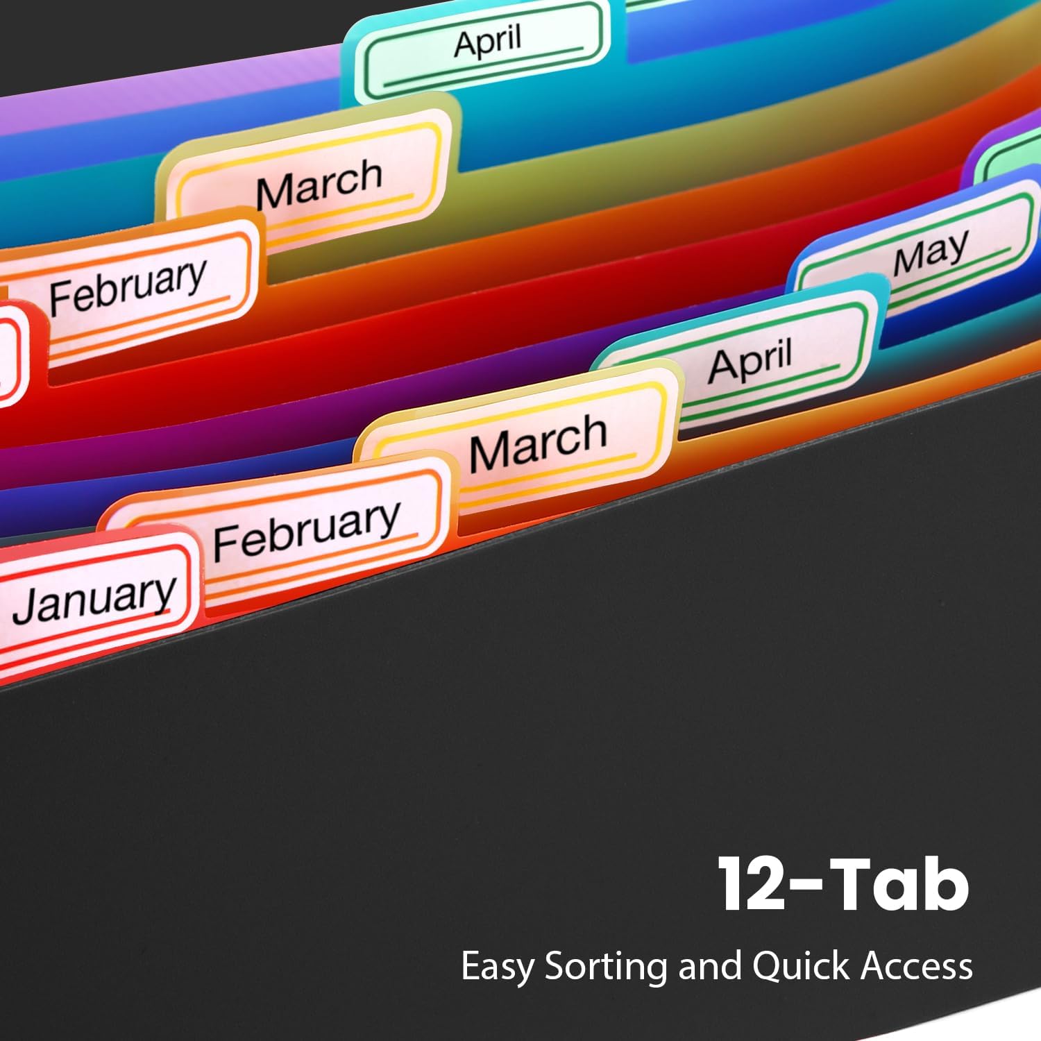 13 Pocket A6 Receipt Organizer, 2 Pack Small Accordion File Organizer, Coupon Organizer with Labels - Black
