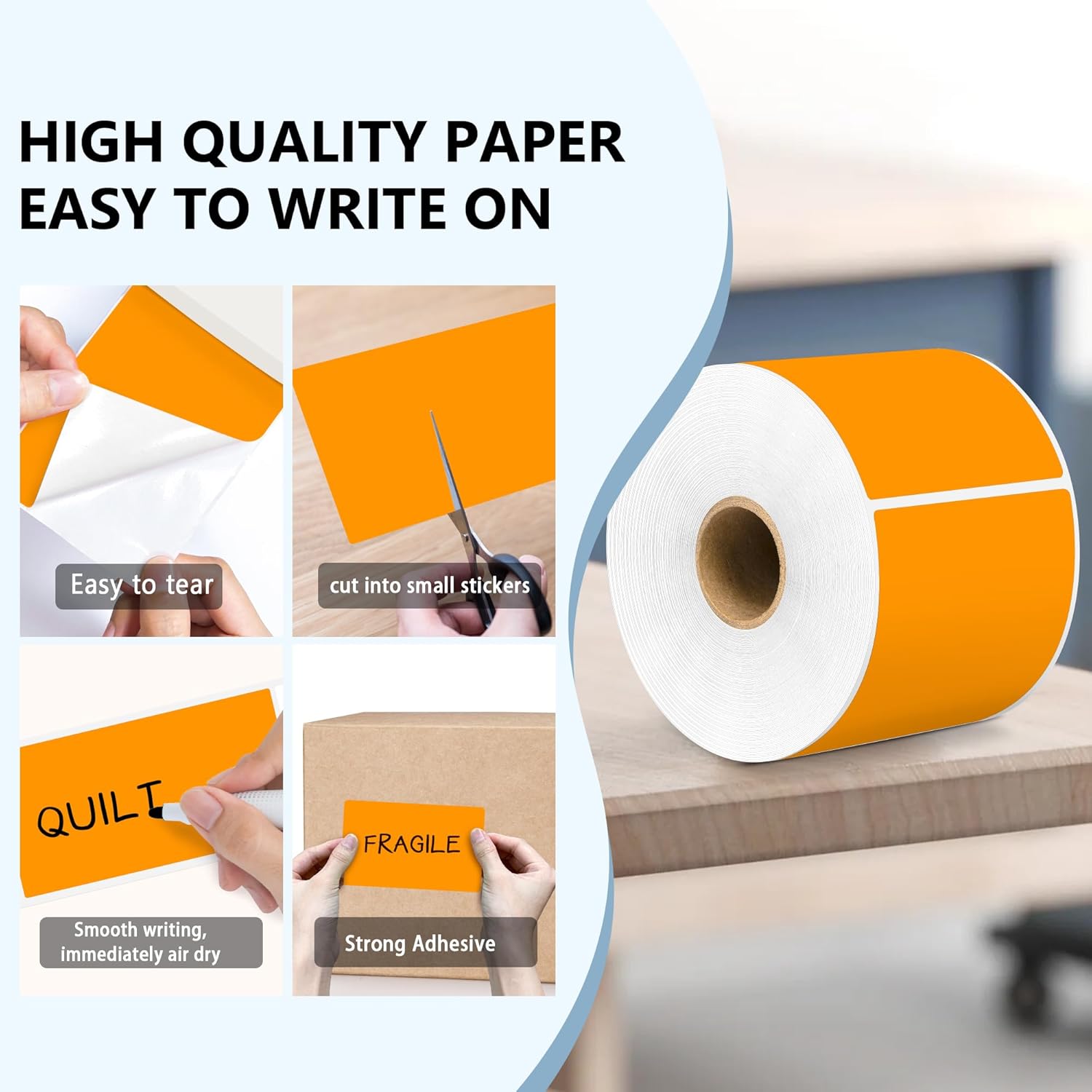 - 1000pcs/4Rolls coding adhesive labels on 250pcs a roll. 3”x 5" diameter, Fluorescent Orange Color-Code Rectangle Stickers.