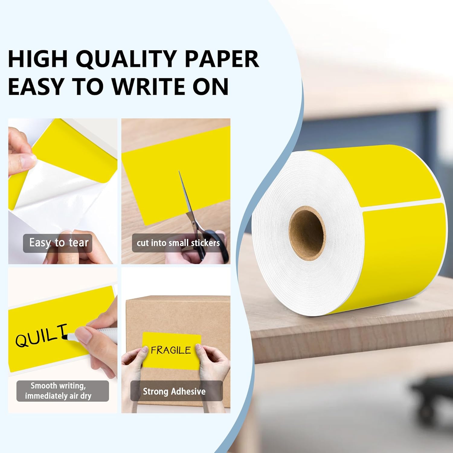 PARLAIM 3 X 5 Inch 1000Per/4Rolls Rectangle Inventory Color Coding Labels,Roll Square Label Stickers for Home (Yellow)