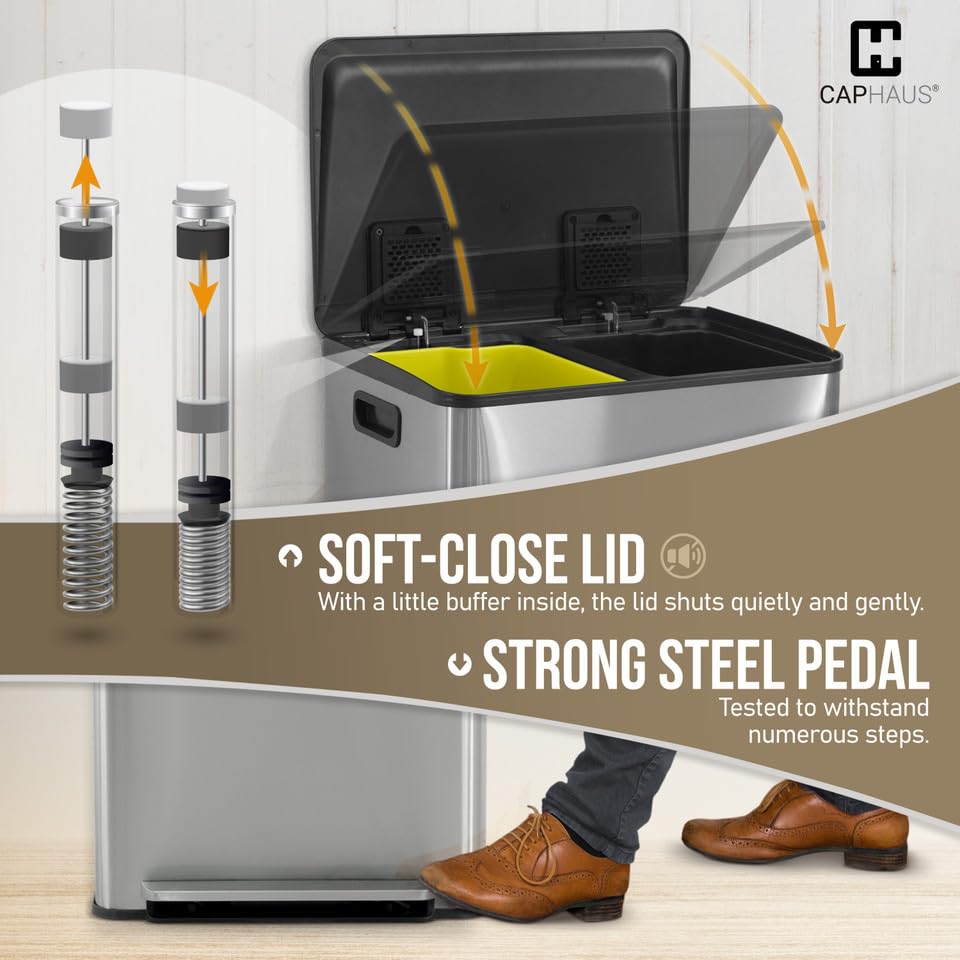 - Efficient Waste Separation: Our dual trash can has separate bins for trash and recycling, with removable bins for easy maintenance; with a capacity 30L + 30L (2 x 8 Gallon), it saves space and suits both residential and commercial use