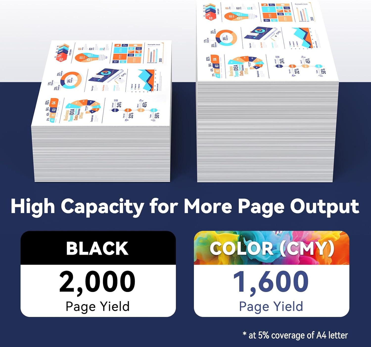 - Page Yield: Up to 2000 pages per 962xl black, 1600 pages per 962xl color ink cartridges at 5% coverage of A4 Paper.