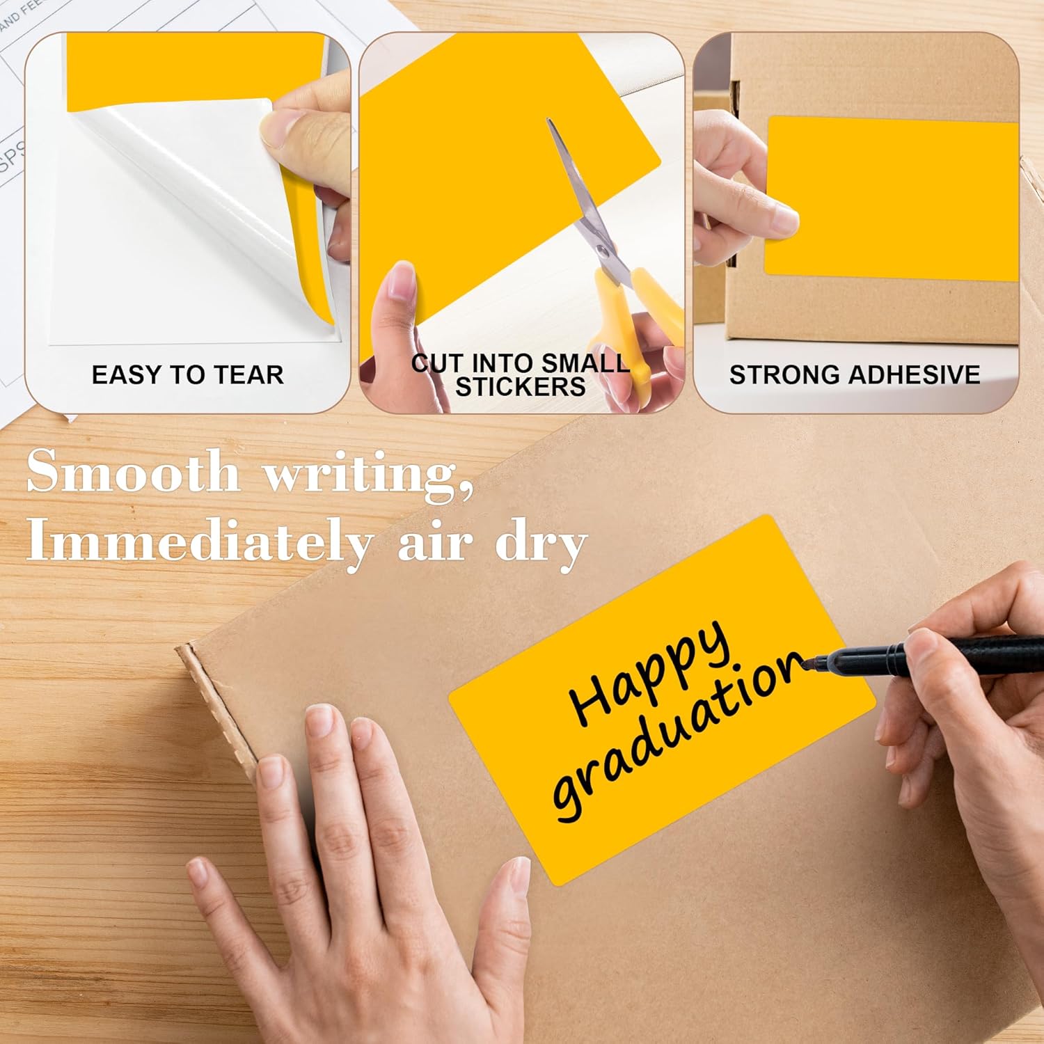 - These square label stickers permanent adhesive label are easy to use, tear off the dotted line of the color box and pull the rectangle stickers from box, what you need is just peel it and then stick it!