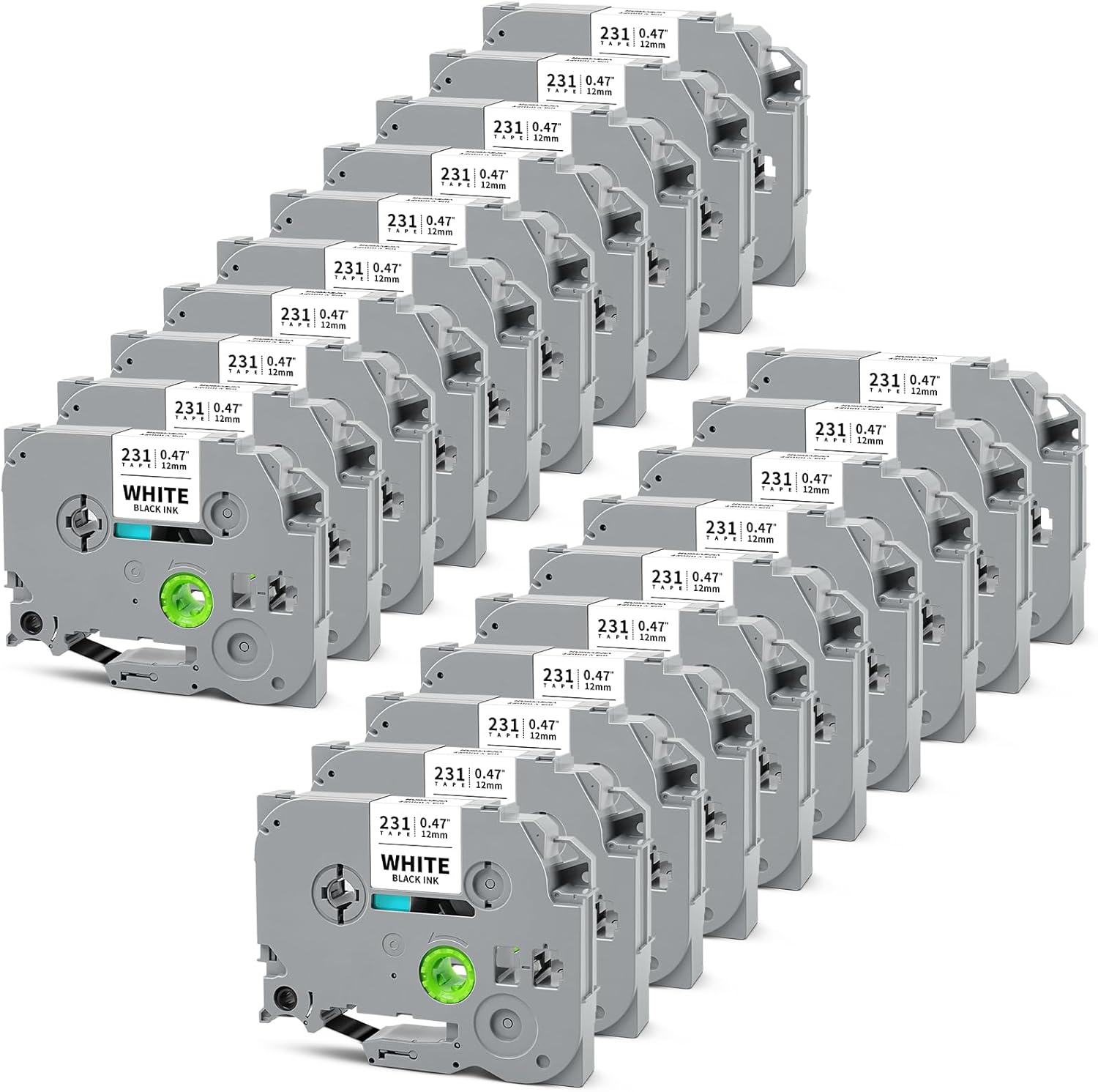 20-Pack Tze Tz Tape 12mm 0.47" Laminated White Compatible for Brother Tze-231 Label Maker Tape P Touch Label Tape 12mm 1/2" White for PT-D220 PT-D210 PT-D200 PT-2430 PT-D610BT PT-D400 PTD600