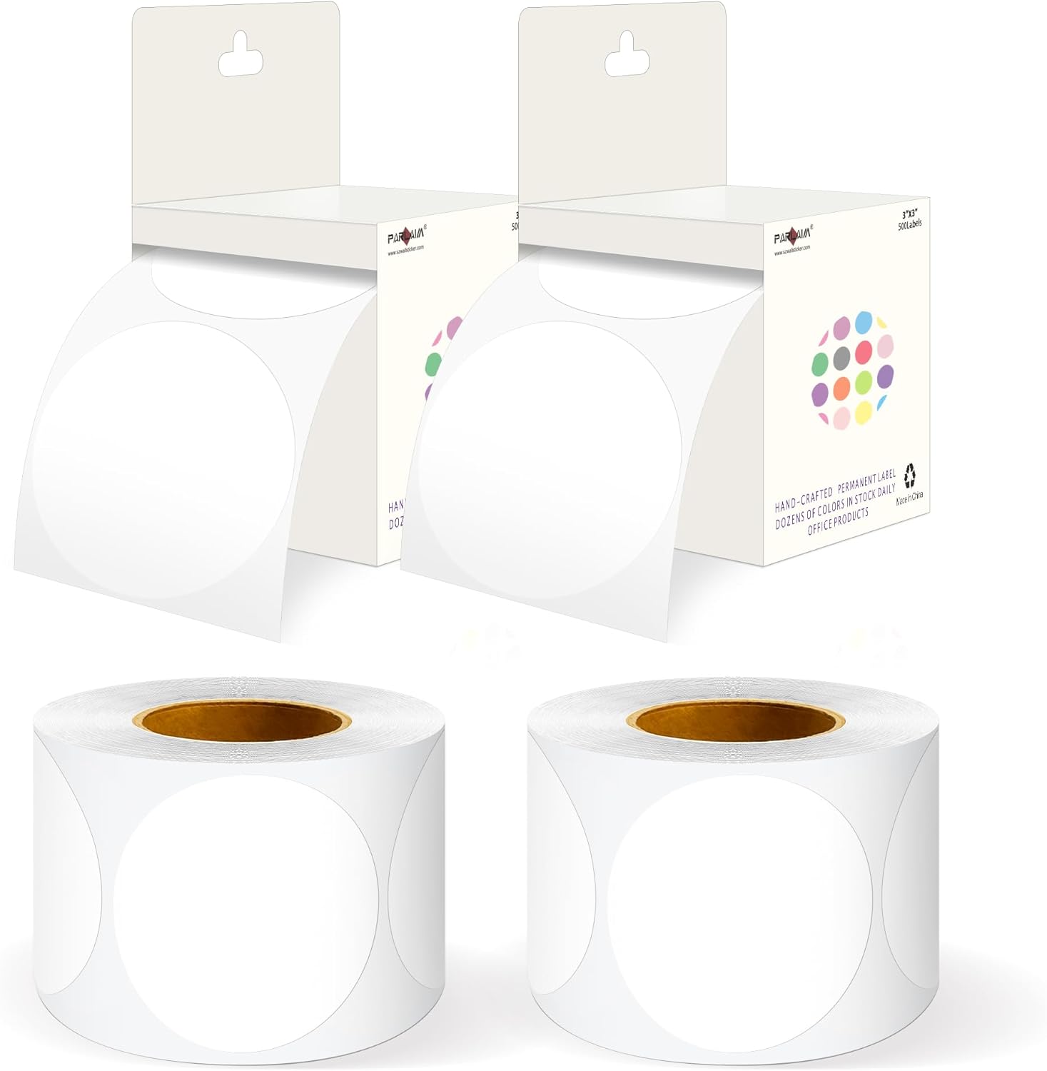 PARLAIM 3" Diameter Round White Color Coding Sticker, 4 Rolls 2000PCS Circle Dot Label,Permanent for Inventory Box Labeling