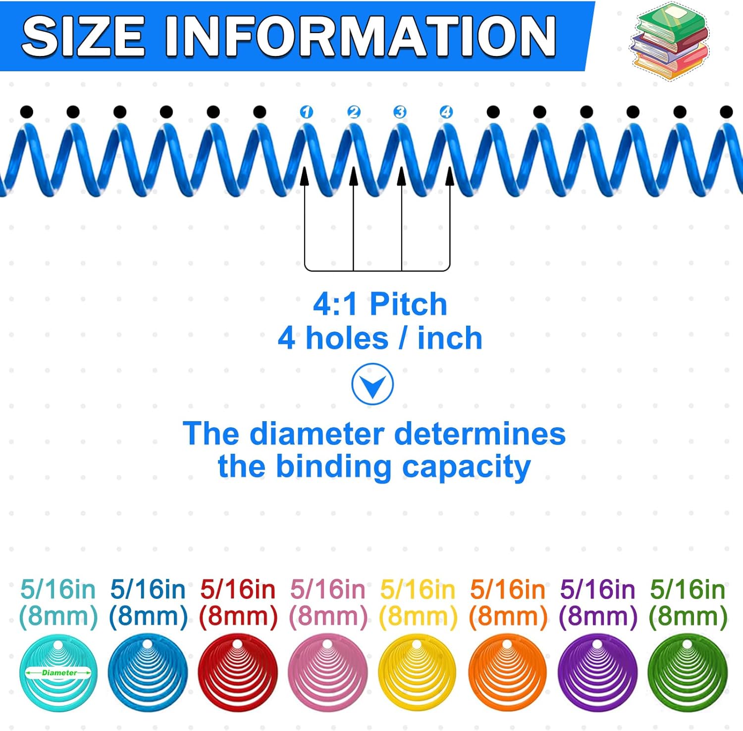 - 【4:1 Pitch & 48 Loops】Spiral Binding Coils (48 loops) are designed with a 4:1 pitch, fit any 4-holes-per-inch coil-binding machine, and letter paper is 8.5 x 11.0 inches. It helps to combine the report pages, calendars, documents, and more, providing much convenience to daily work or study. Their 4:1 pitch matches the 4-holes-per-inch punching pattern on the side of your book.