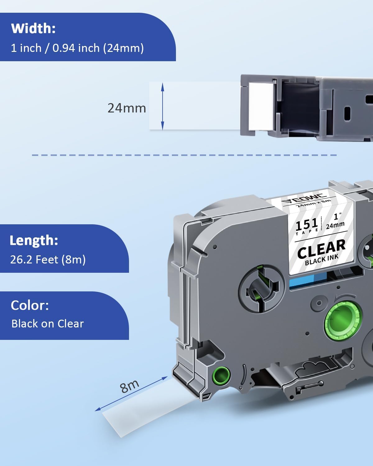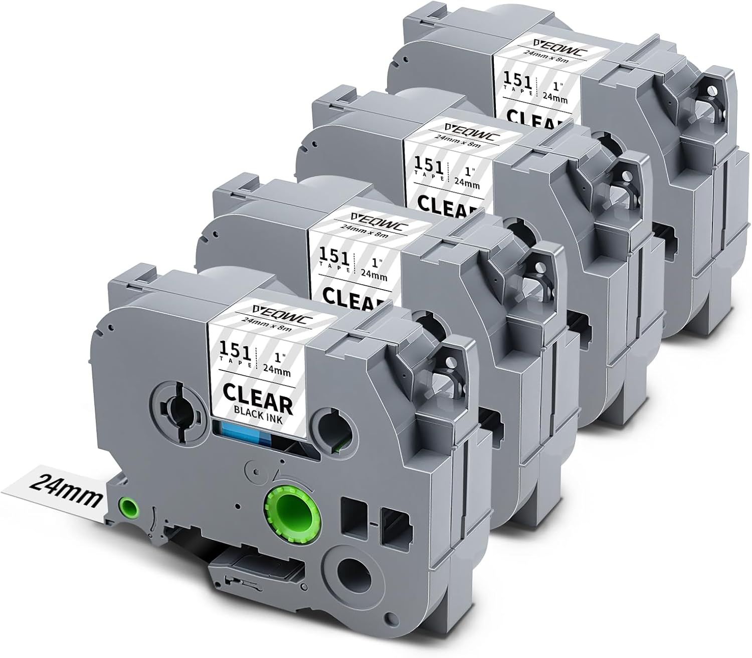 24mm 0.94 Laminated Clear TZe151 TZ Tape Conpatible for Brother TZe-151 P Touch Label TZe Tape 24mm 1 Inch Label Maker Tape for Brother PT-D610BT PT-D600 PT-P710BT PT-P700 PT- P910BT, 4-Pack