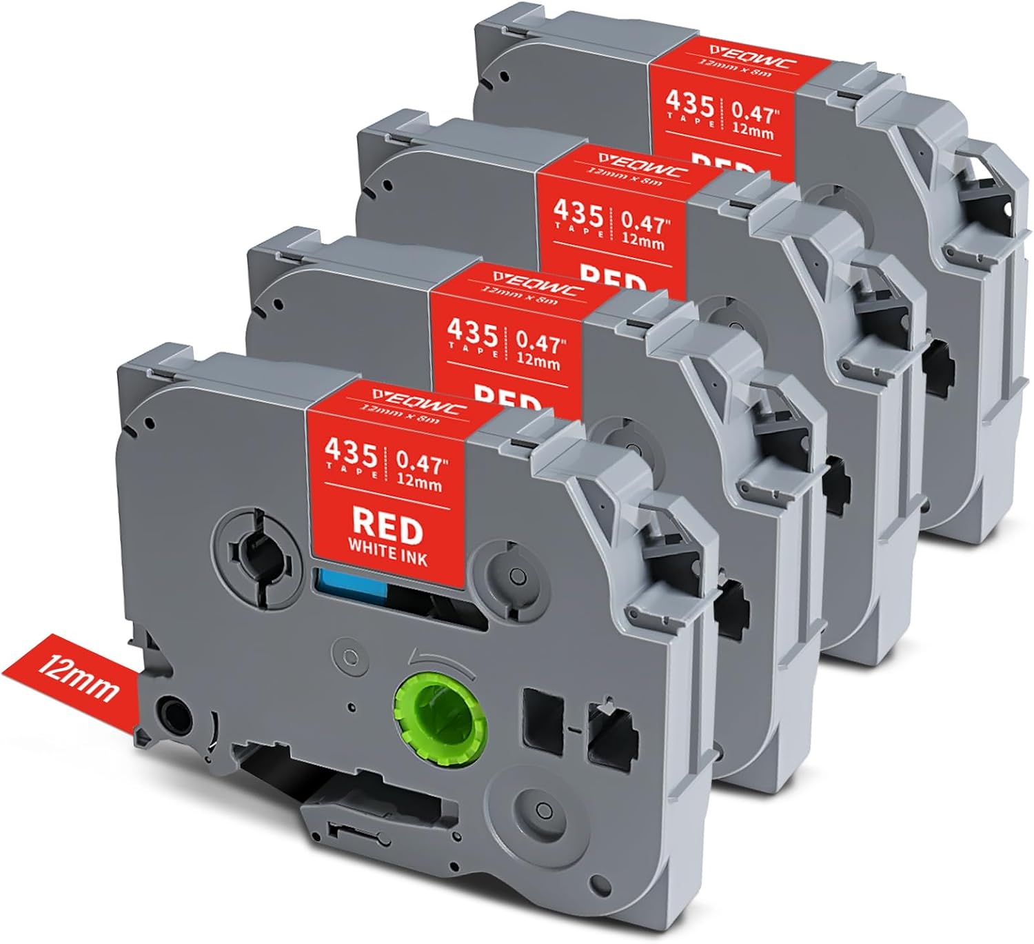 - Package Included: 4 Pack replacements compatible for Brother Ptouch label maker tapes TZe-435. Dimensions: Each pack measures 1/2" (0.47") in width and 26.2 ft (8m) in length, totaling 48 meters across all packs. The 12mm tape is a standard size frequently used in everyday applications.