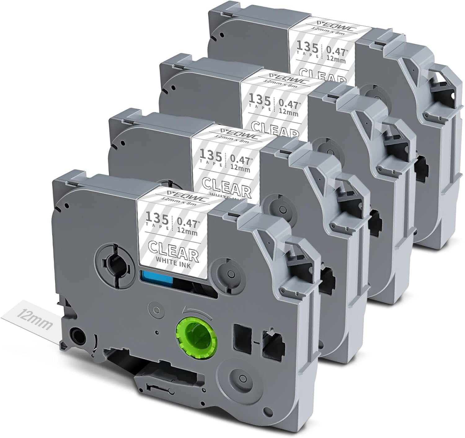 Tze135 Tze 12mm 0.47 Laminated White on Clear Label Maker Tape Compatible for Brother Tze-135 Tz-135 Tz 1/2 Refill Work for Ptouch PT-D210 PT-D220 PT-H110 PT-D400 PT-D600, White on Clear, 4 Pack