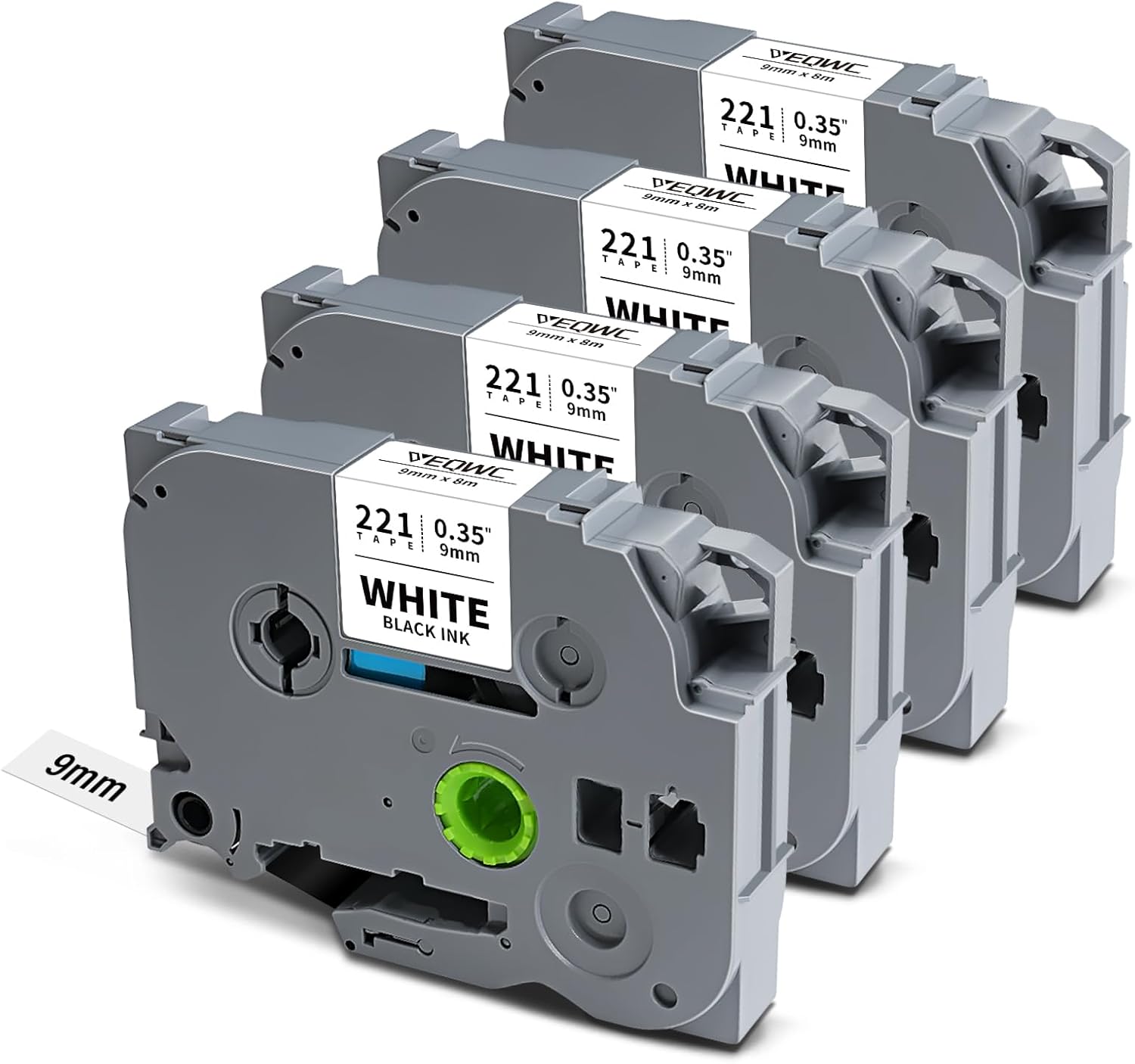 TZ Tape Tz-221 9mm 0.35 Laminated White Tape Compatible for Brother P-Touch TZe221 3/8 Inch Refill Work with Brother Label Maker Tape PT-D210 PT-D220 PT-H110 PT-1890 PT-D600 PT-D410, 4-Pack