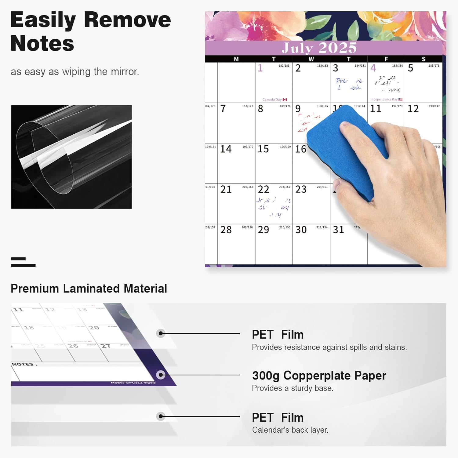 - ✨ Laminated Calendar with Dates: Waterproof wall calendar comes with a mini eraser, four dry-erase markers, 12 push pins, and 10 transparent round stickers. 12 months calendar covers the time range from July 2025 to June 2027, making it perfect for long-term use.