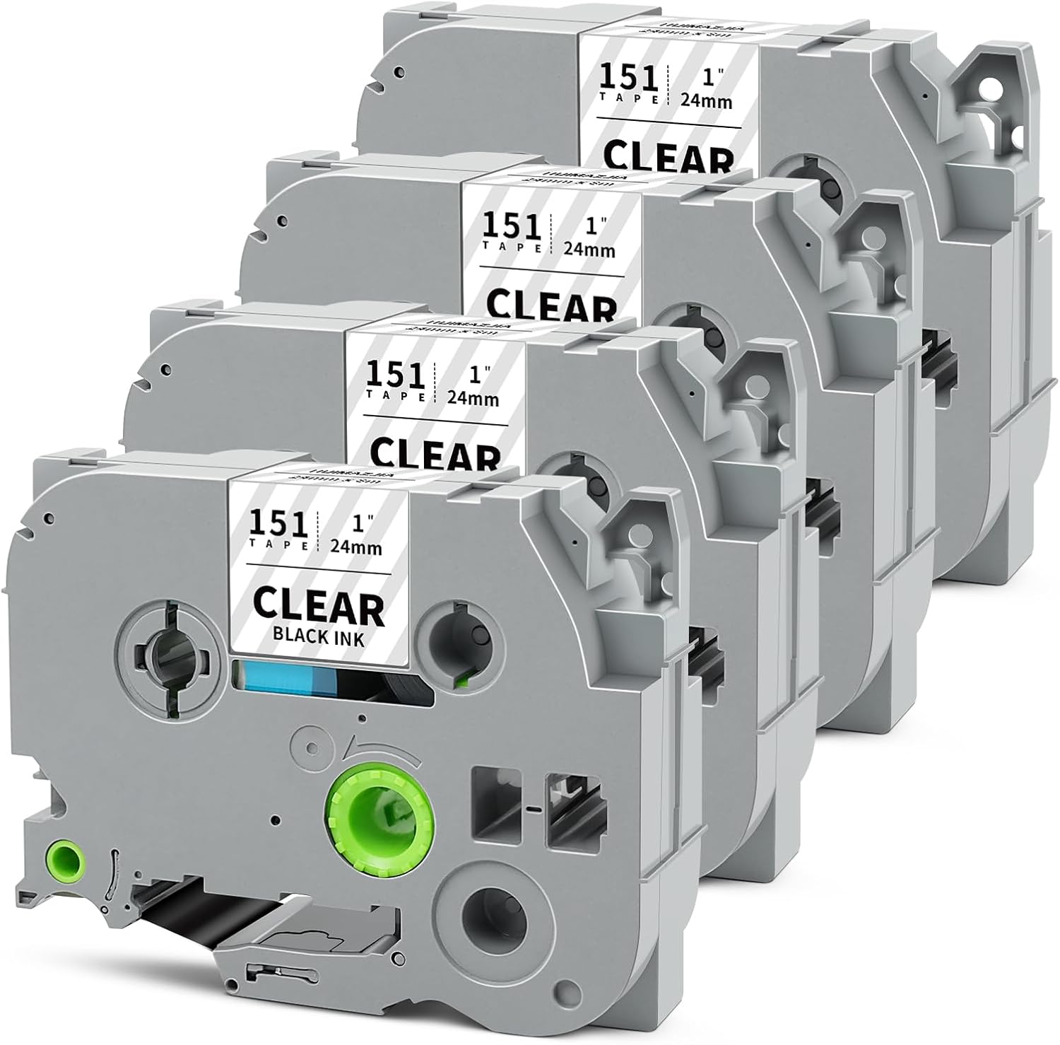Tze151 24mm 0.94" Laminated Clear Tape Compatible for Brother Tze-151 Tz-151 P Touch Tz Tze Label Tape 24mm 1" Black on Clear for PTD600 PTD610BT PTP710BT PTP750W PTE550W Label Maker, 4-Pack