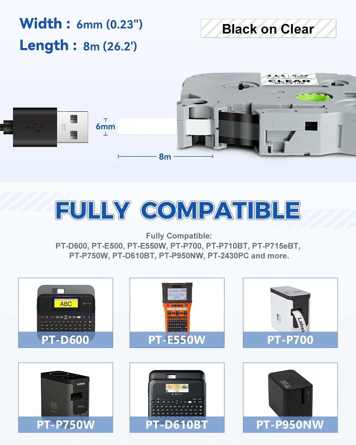 - Widely applicable: These 6mm 0.23" laminated clear label tapes are suitable for indoor and outdoor use. Compatible with Brother 6mm 0.23" black on clear label tape can be used to label various items such as home, office, industrial, supermarket, school, and other supplies