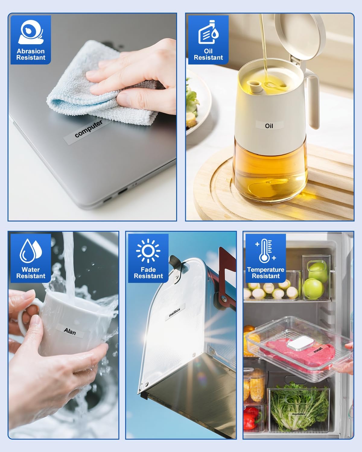 - Features: Our 6mm label maker tape split design makes the label tape easy to peel and apply, with strong adhesion/waterproof/temperature/oil/abrasion/fading, and reliably sticking to various surfaces