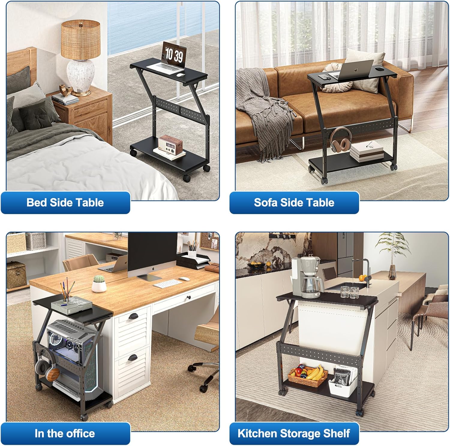 - Efficient and Practical: The rolling cart equipped with four 360-degree rotating wheels with brakes, the computer tower stand ensures smooth movement on different surfaces while providing stability, even when fully loaded. The gaming riser mount features a 2-tier standing design, with the bottom shelf for the computer tower and the top shelf for printer, monitor, laptop and various office desk accessories.
