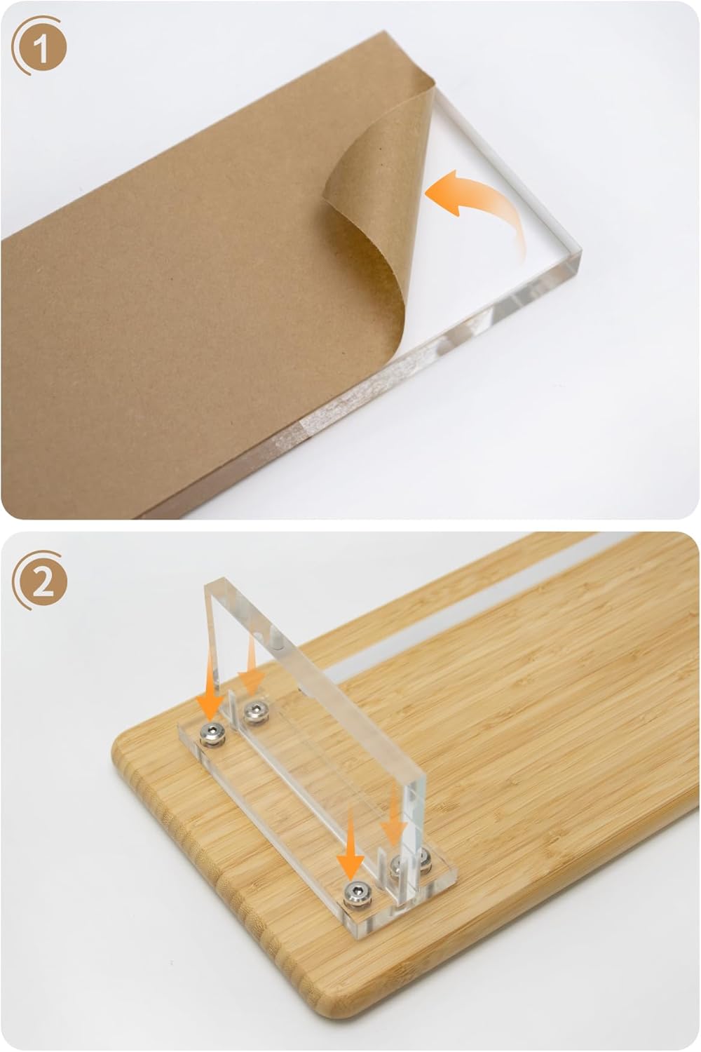 - Sleek Bamboo + Acrylic Design: The mix of natural bamboo and clear acrylic creates a clean, floating look that adds elegance and visual lightness to any workspace.