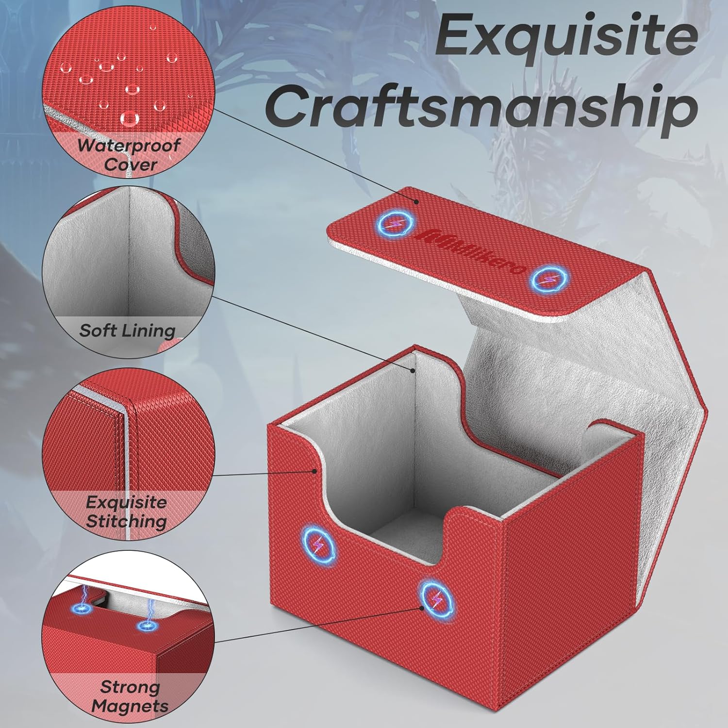 - 【Efficient Card Organization】This magic deck box includes 4 dividers, allowing you to organize your cards efficiently. The strong magnetic closure ensures the card box stays securely closed, even when flipped over, providing reliable protection for your cards and preventing any damage.