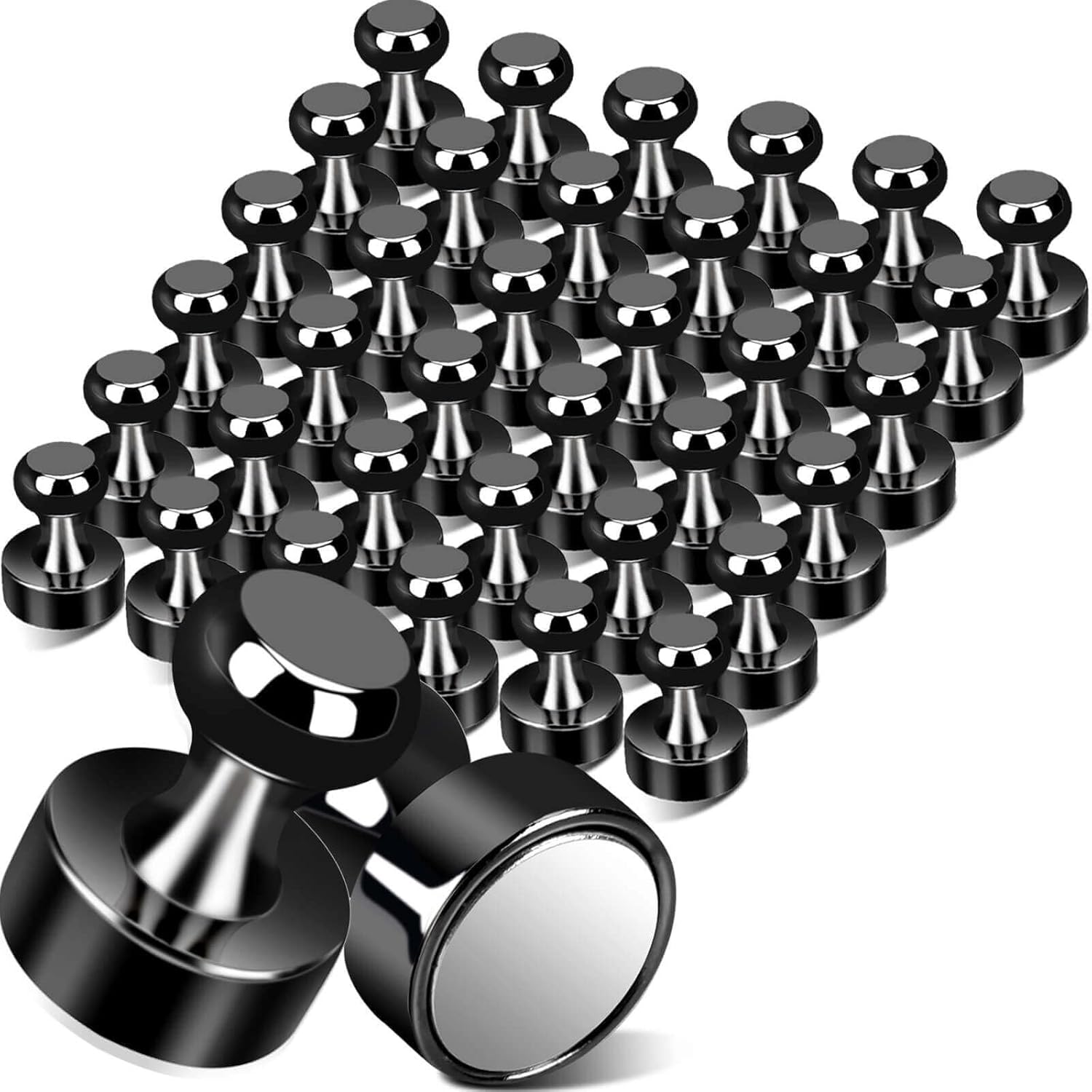 Black Fridge Magnets, Small and Strong Refrigerator Magnets for Whiteboard, Push Pin Magnet s for Classroom, Kitchen Accessories, Dry Erase and Map, Magnetic Decorative Magnets