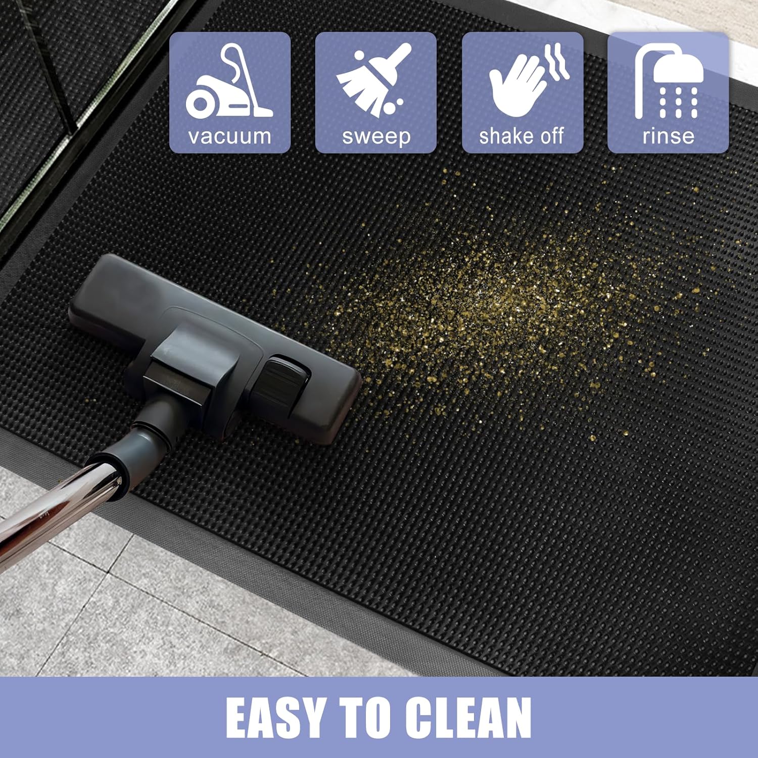 - [EASY TO CLEAN ] The entryway mat is designed to be easy to clean quickly and efficiently with a vacuum cleaner or a traditional broom. In addition, tapping and shaking the back of the mat helps to remove any remaining debris. For a deeper clean, rinse with a garden hose and hang the doormat in a ventilated area or dry it in the dryer. This effortless maintenance routine will keep your welcome mat neat and organized.