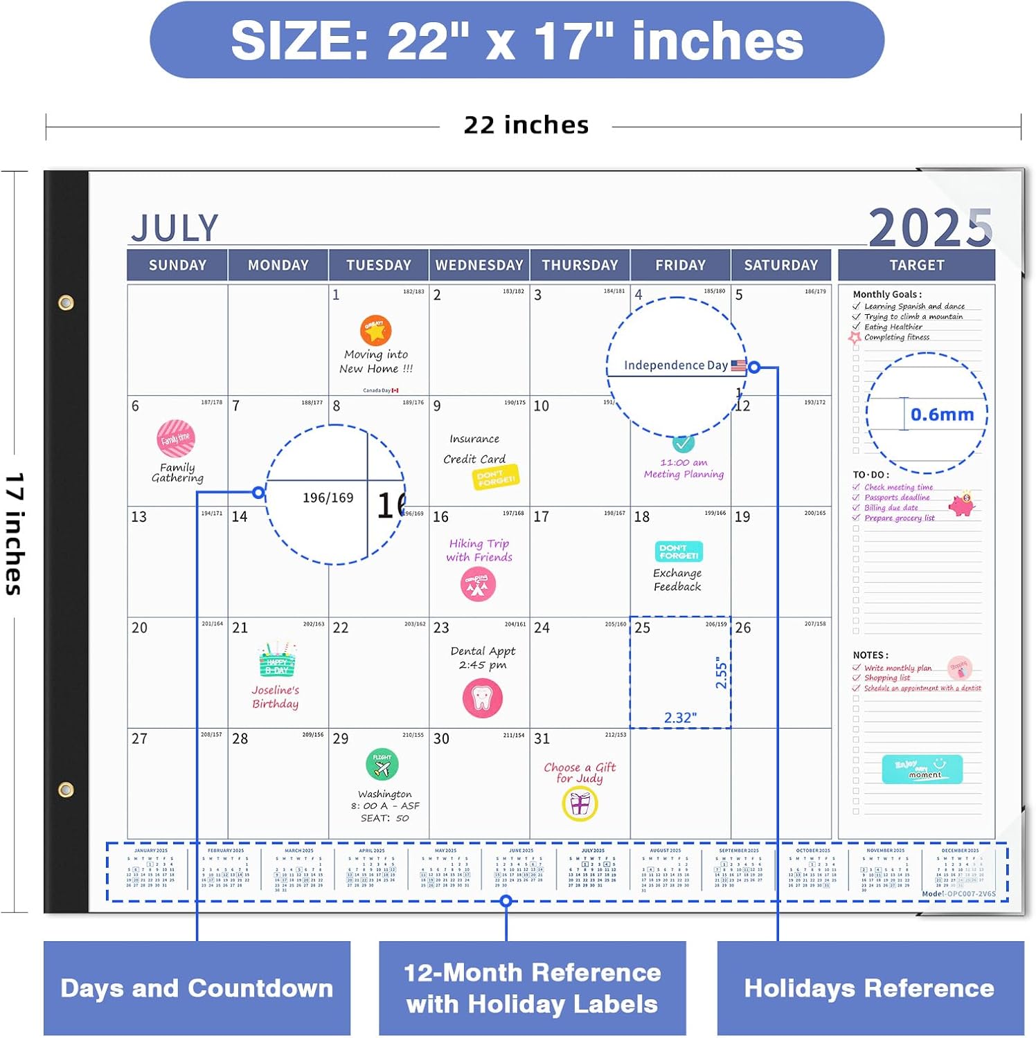 Ospelelf Desk Calendar 2025-2026 Large 22'' x 17'' Calendar 2025 Monthly Desktop Calendar, 18 Month Calendar, Use July 2025 - Dec 2026, Blue