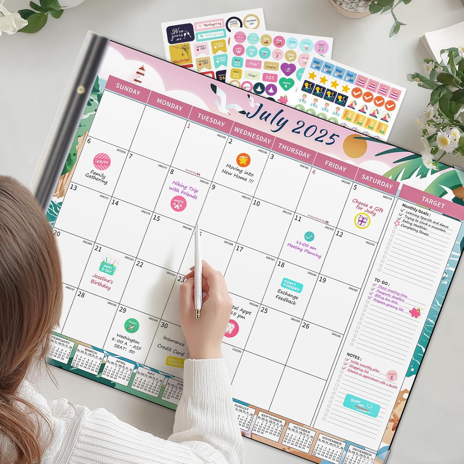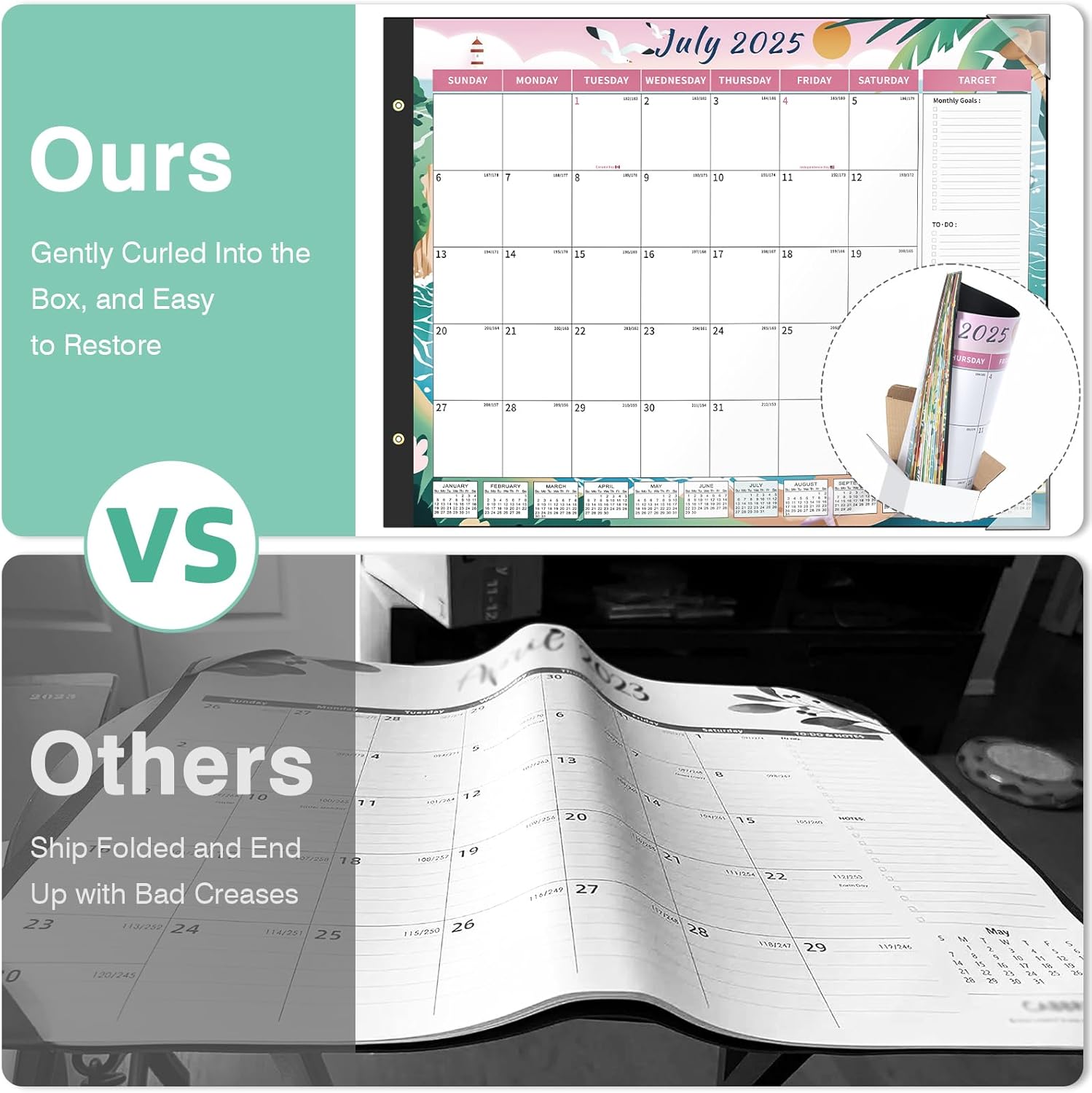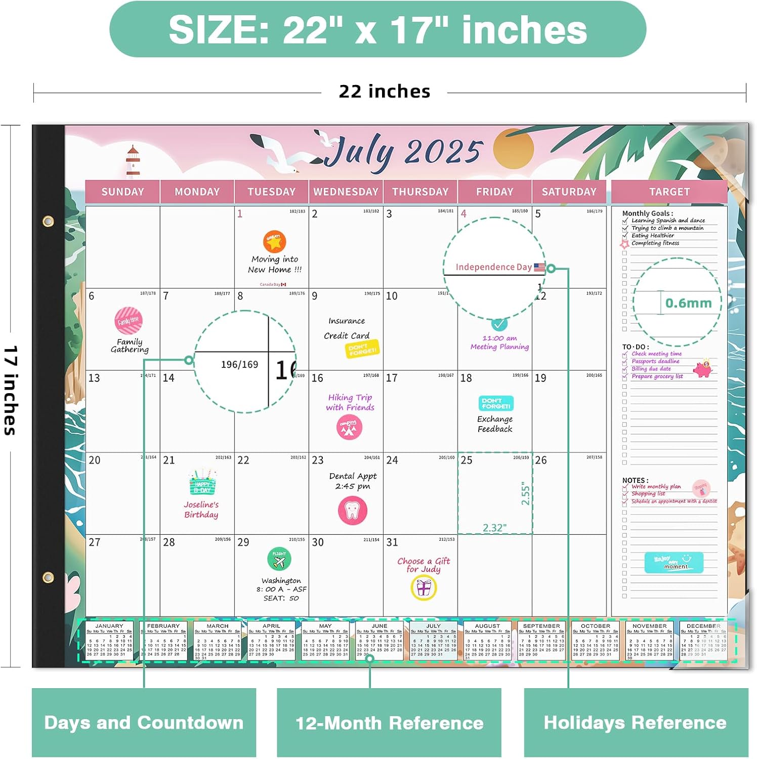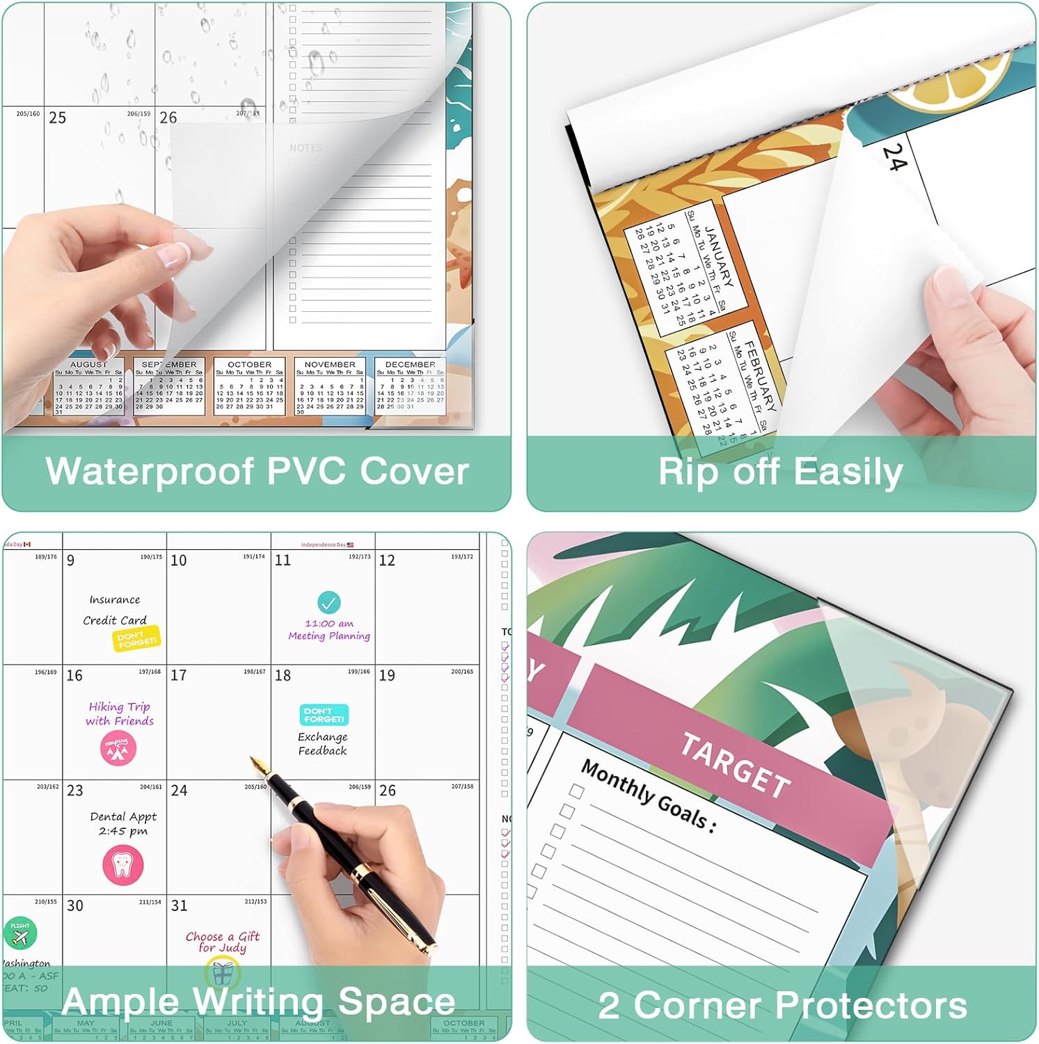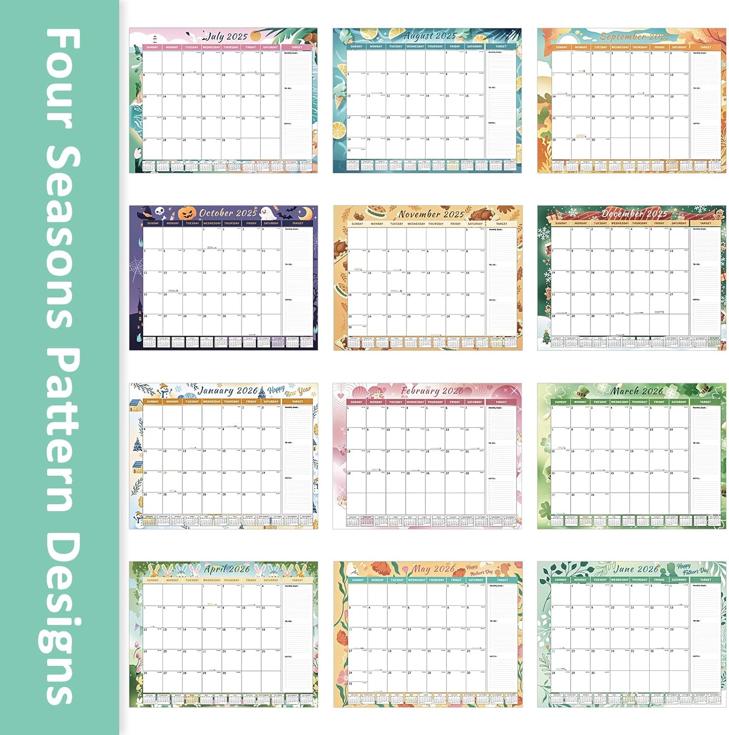 - 【12 Colorful Season Patterns】Featuring 12 colorful season patterns, this big calendar covers 18 months of planning, helping you stay on top of your schedule with ease while treating yourself to a new visual delight every month. This calendar is the perfect way to add a pop of color and style to your workspace.